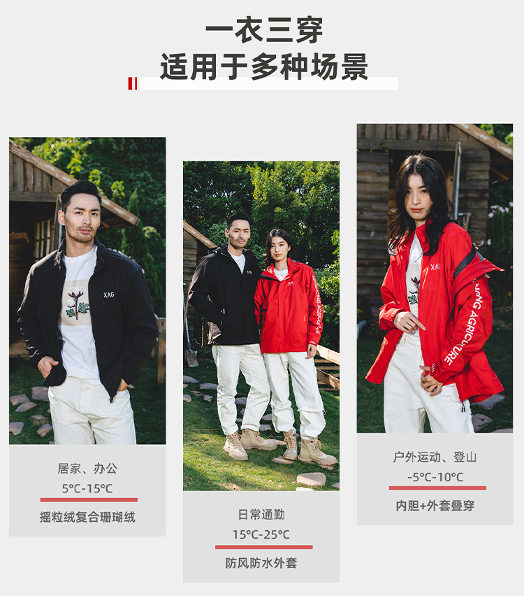 XAG 三合一抓绒内胆冲锋衣