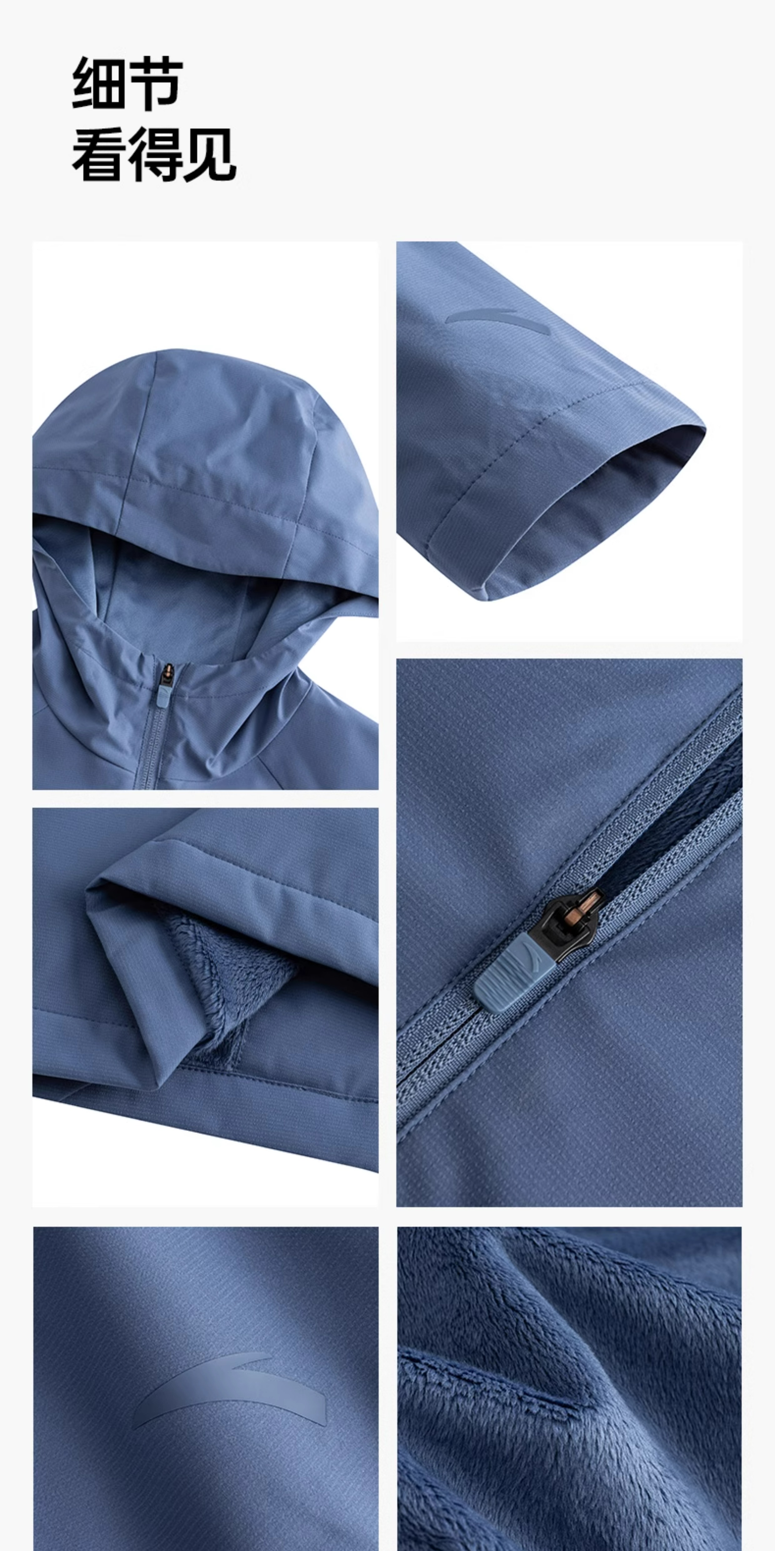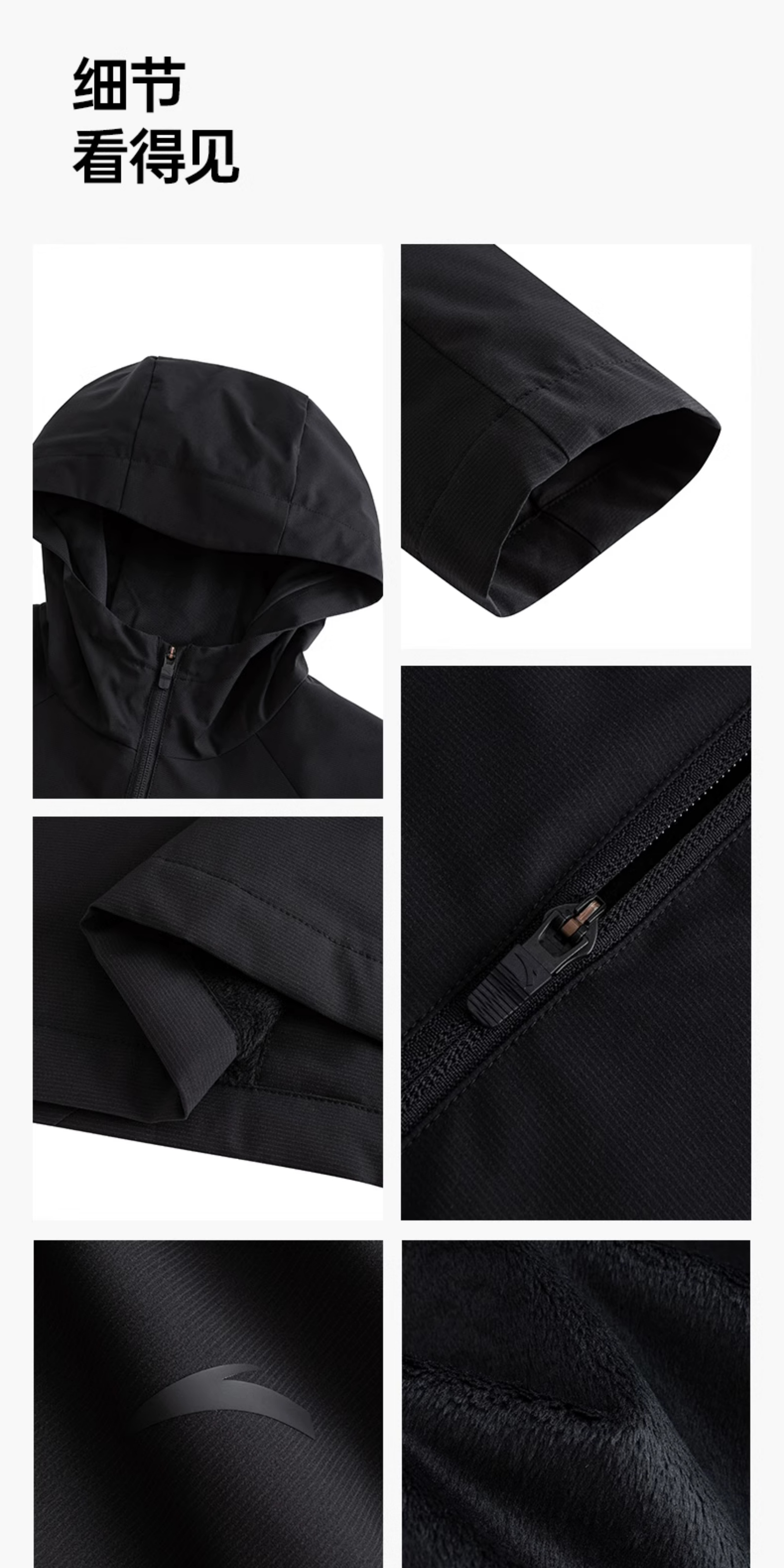 超级安踏防水加绒外套男秋冬运动训练夹克休闲连帽上衣152547604U
