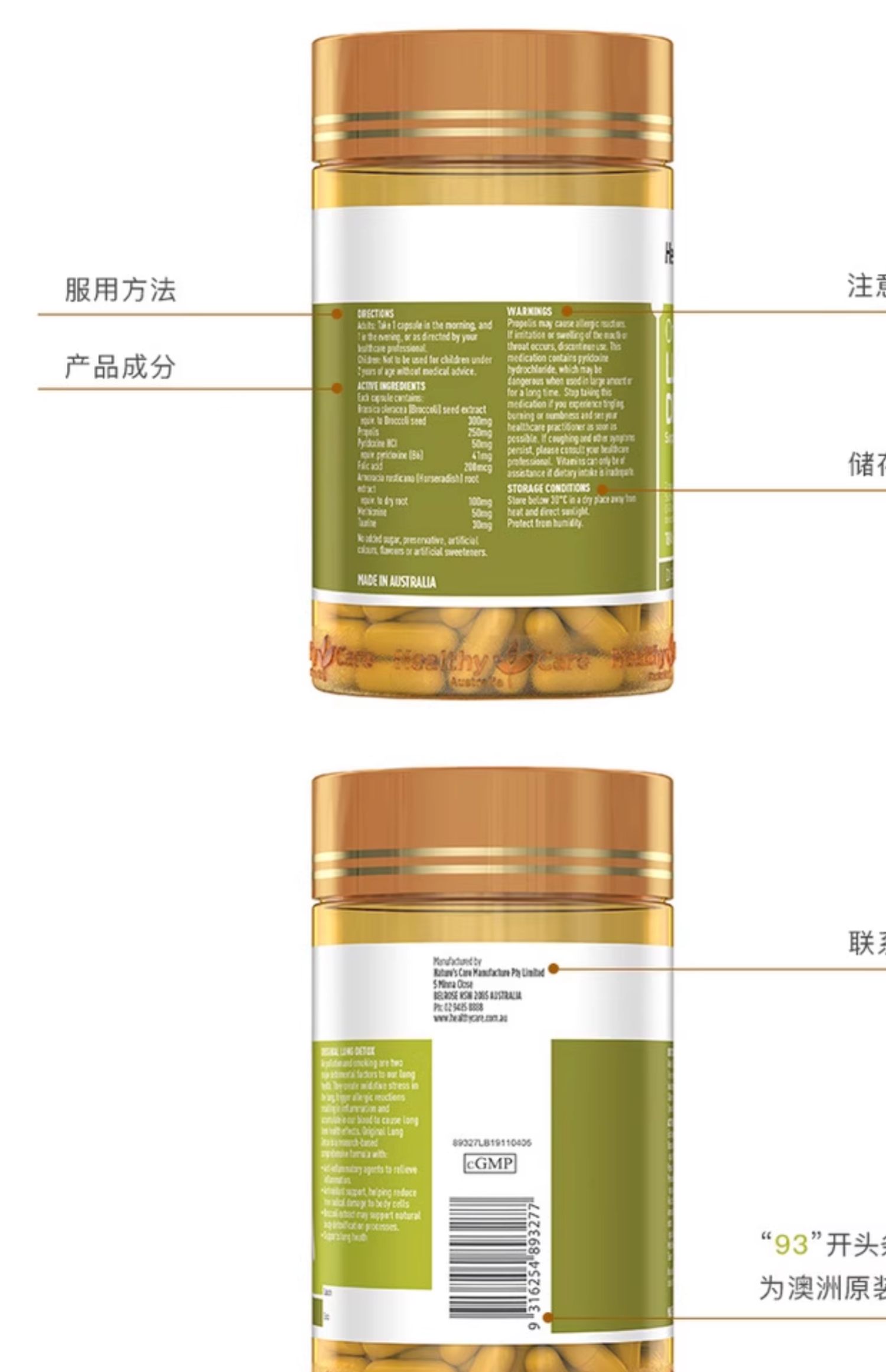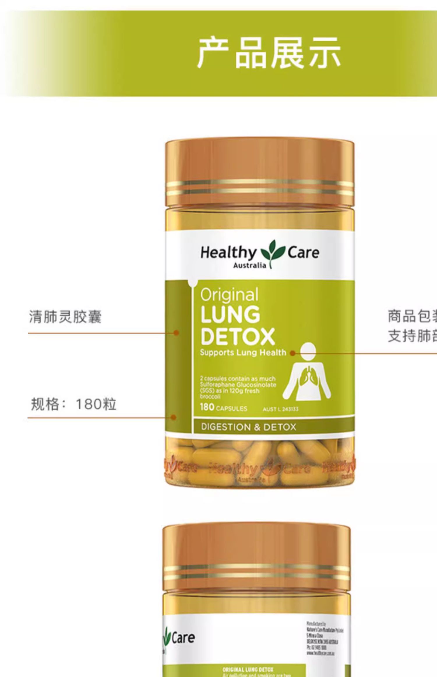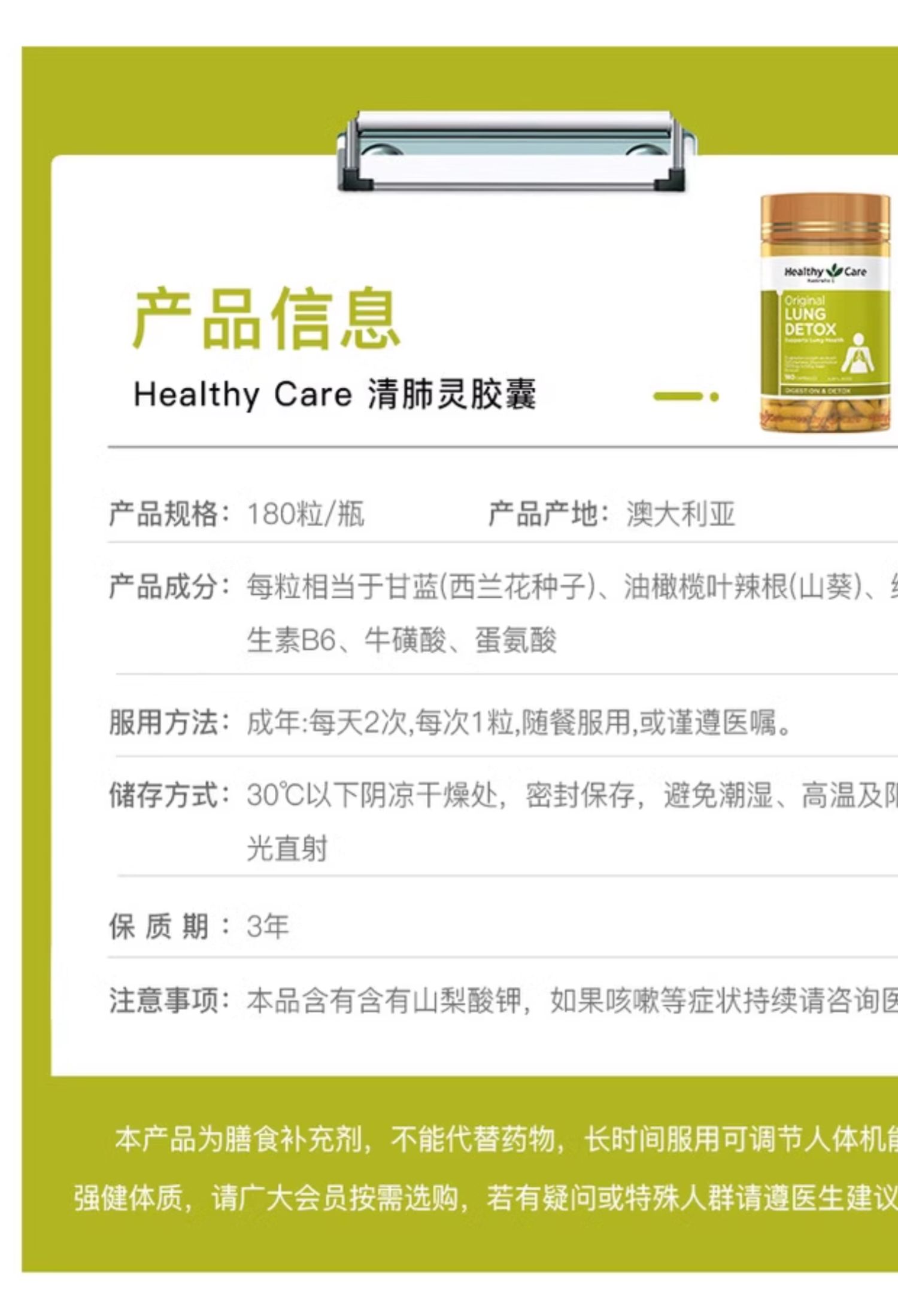 【保税仓】Healthy Care清肺灵180粒胶囊/瓶 效期26.12月