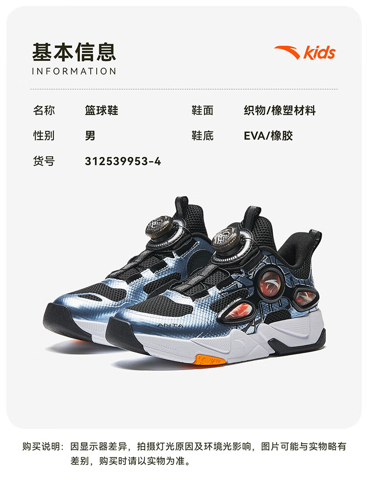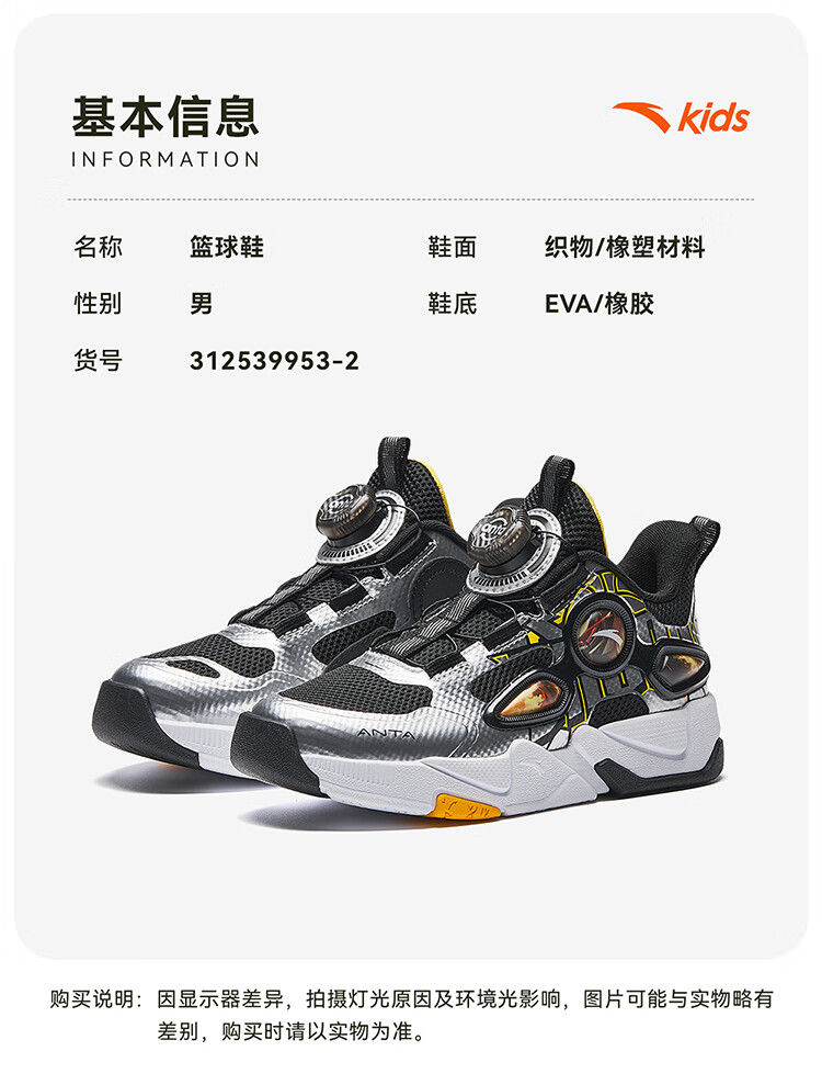 安踏儿童篮球鞋男小童2025秋季防滑耐磨实战雷剑篮球鞋312539953