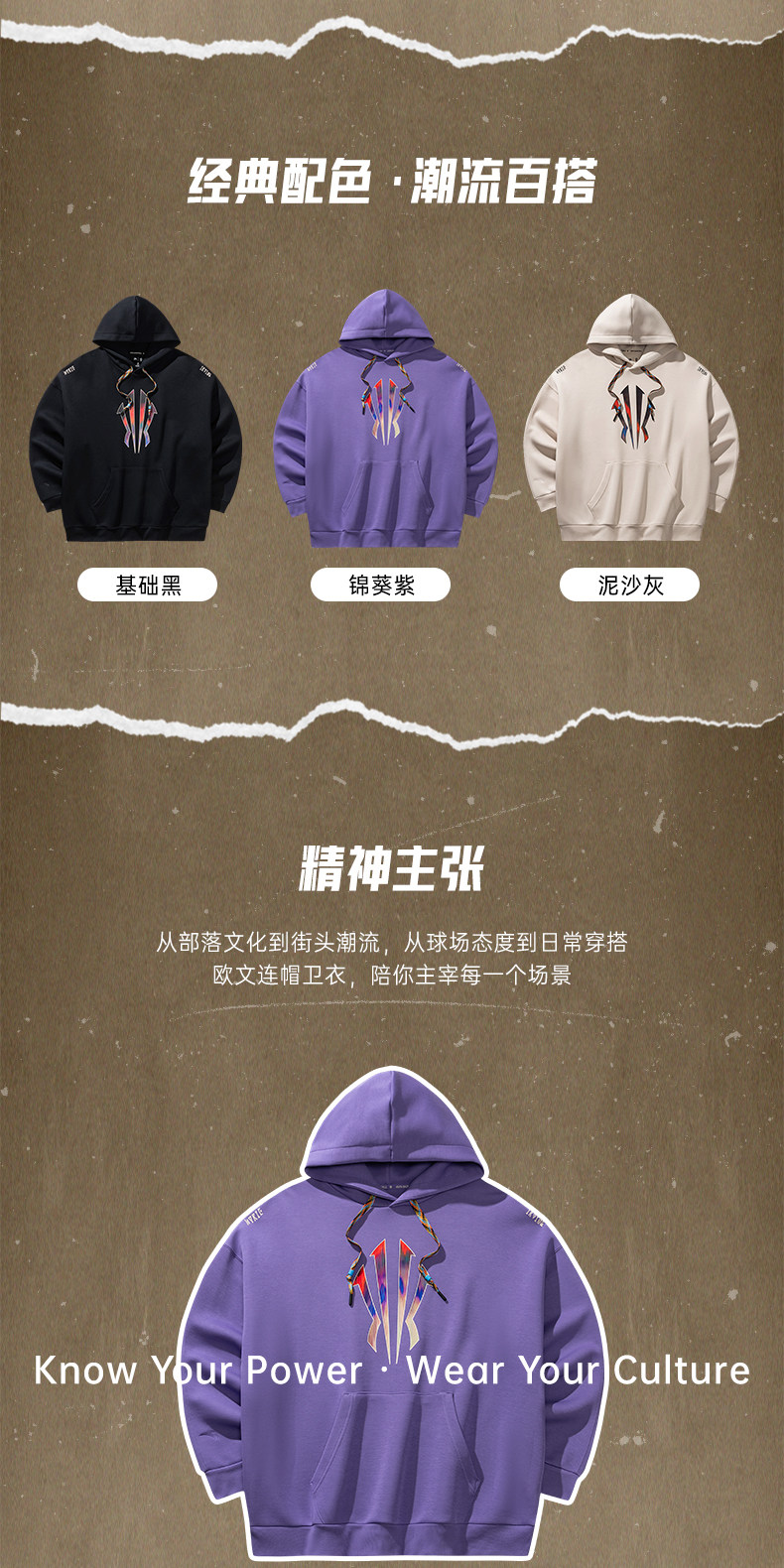 安踏欧文系列男女款2026春季新款运动宽松潮流连帽卫衣172611706S