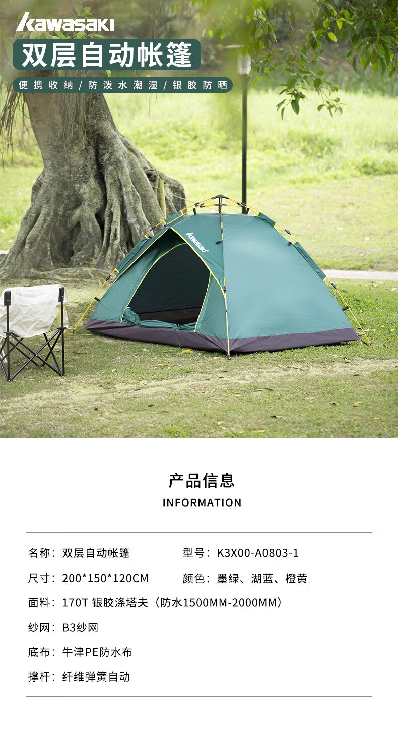 川崎 帐篷 户外 双层自动帐篷 K3X00-A0803-1