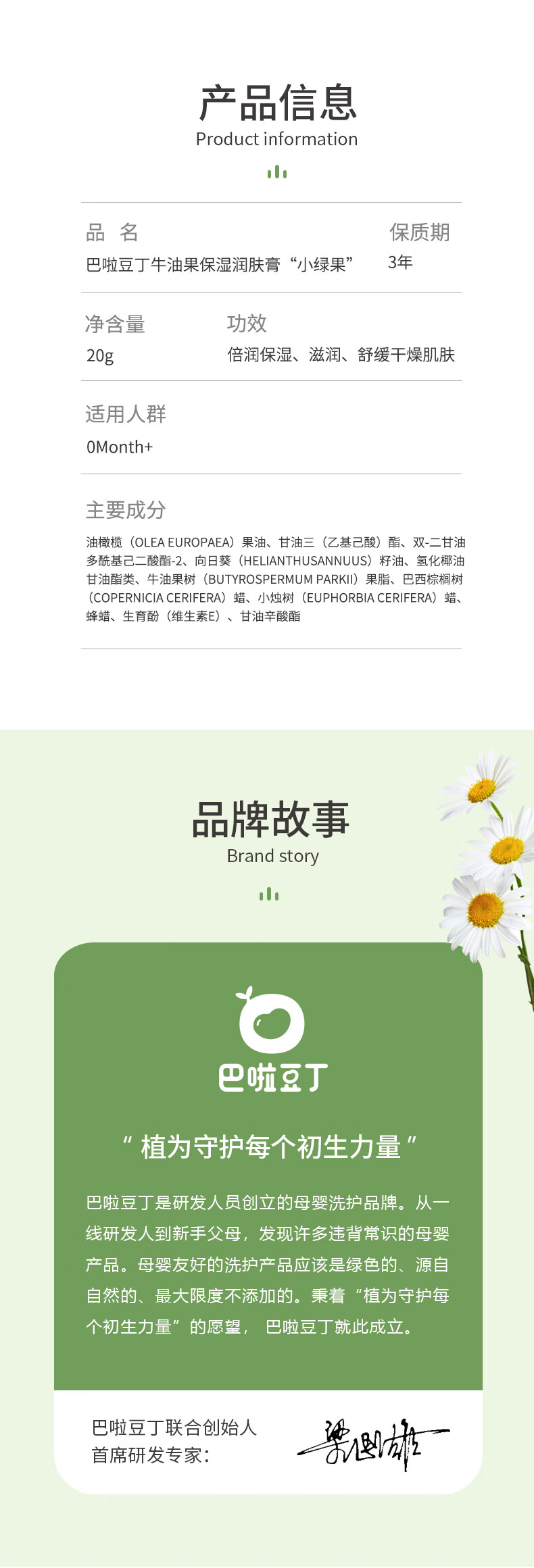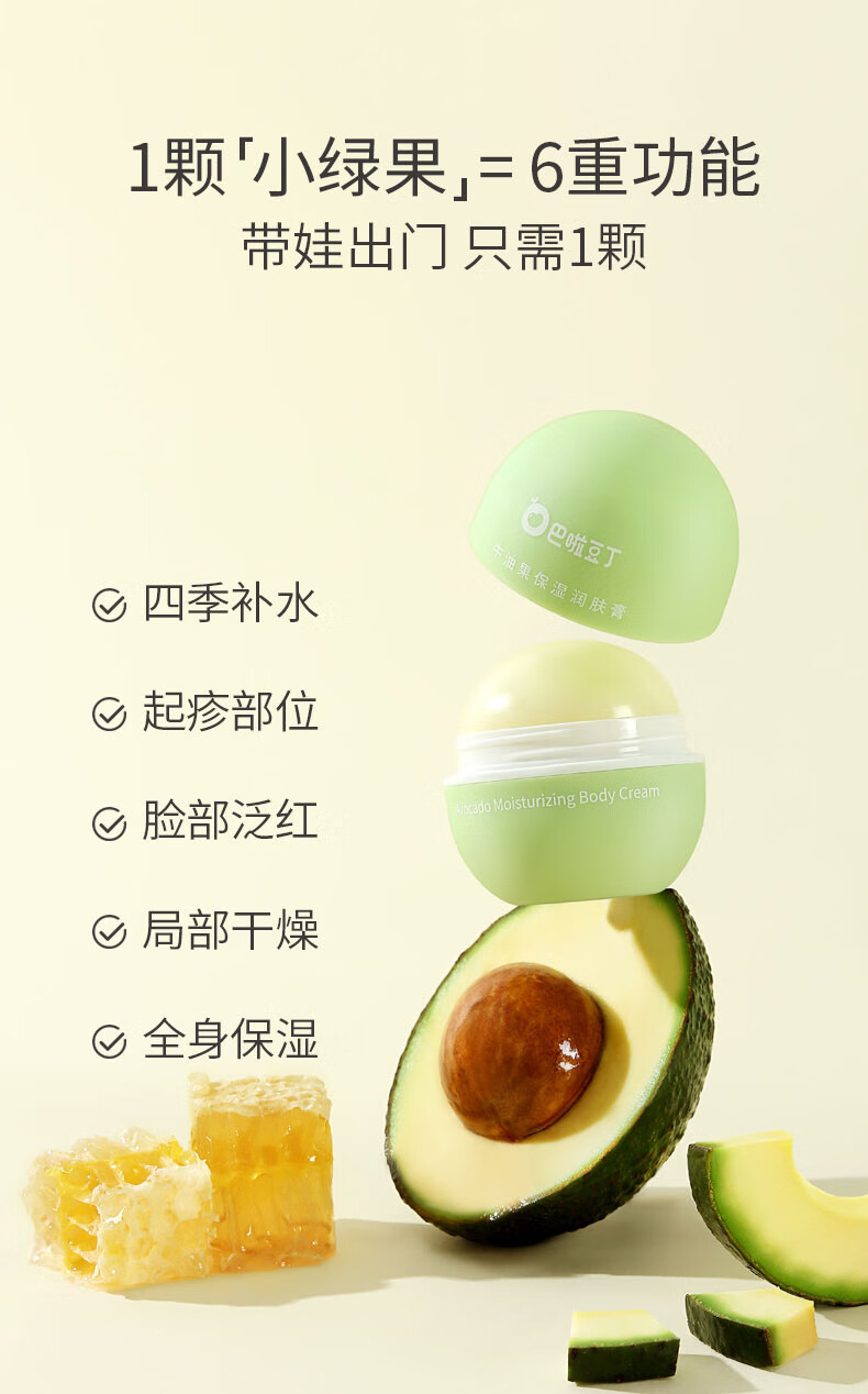 巴啦豆丁 牛油果润肤膏 儿童舒缓保湿润肤膏20g/瓶
