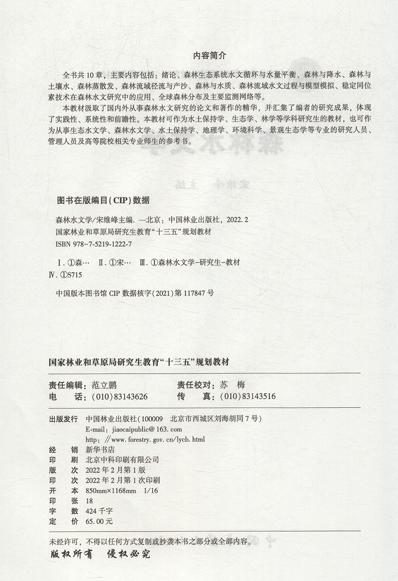 森林水文学(国家林业和草原局研究生教育十三五规划教材) 宋维峰 1222 中国林业出版社