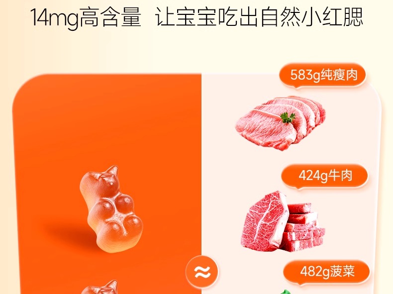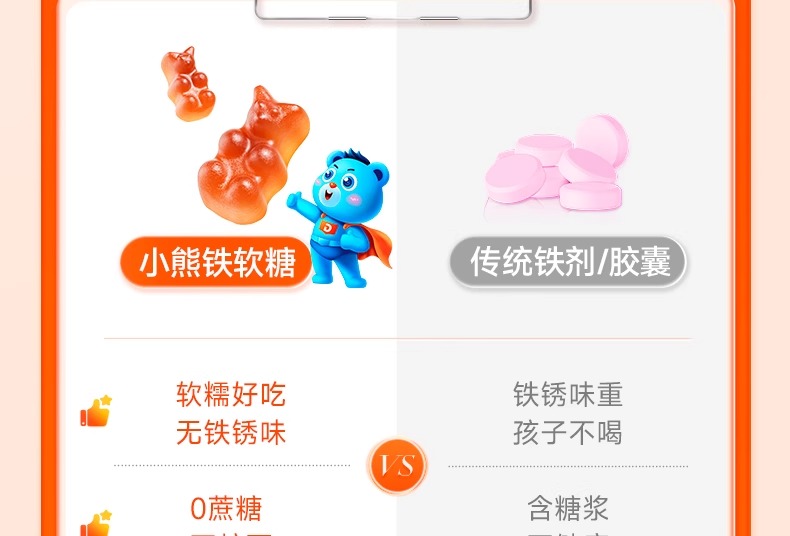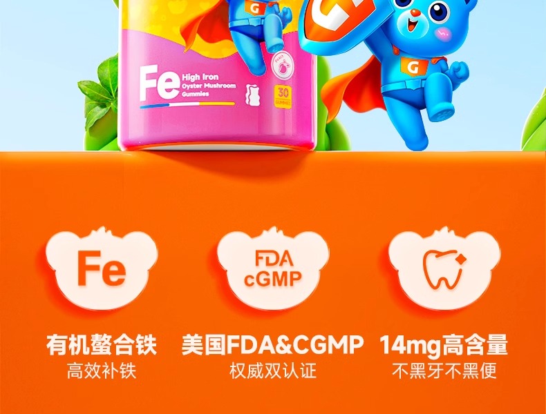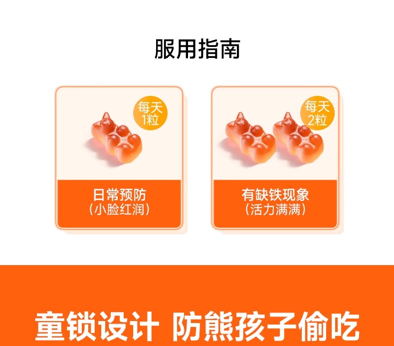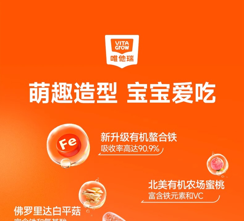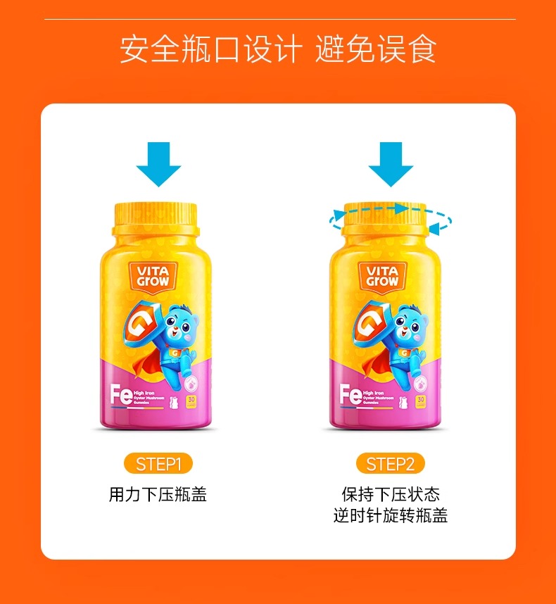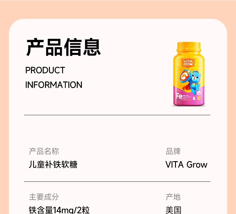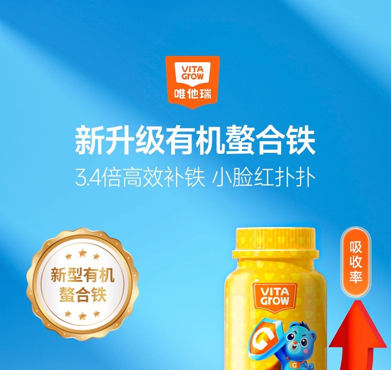 【临期秒杀】 VITA Grow唯他瑞儿童补铁软糖小脸红润婴儿小熊糖*2瓶(有效期至26年2月)