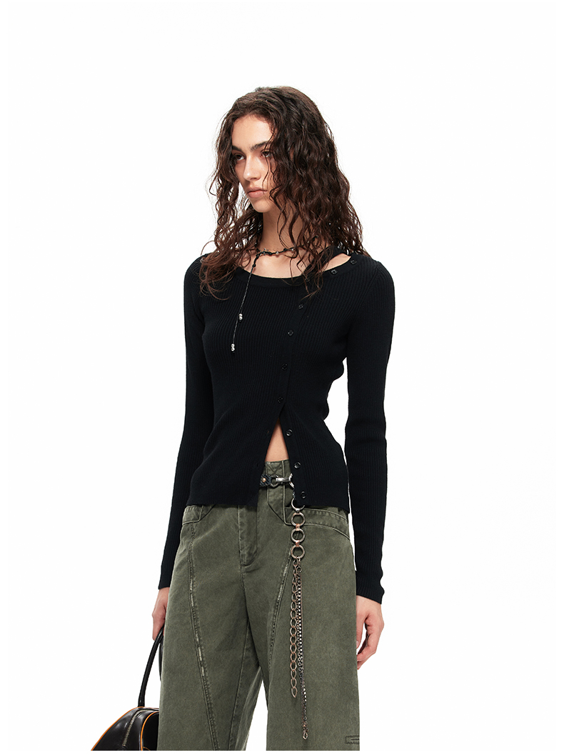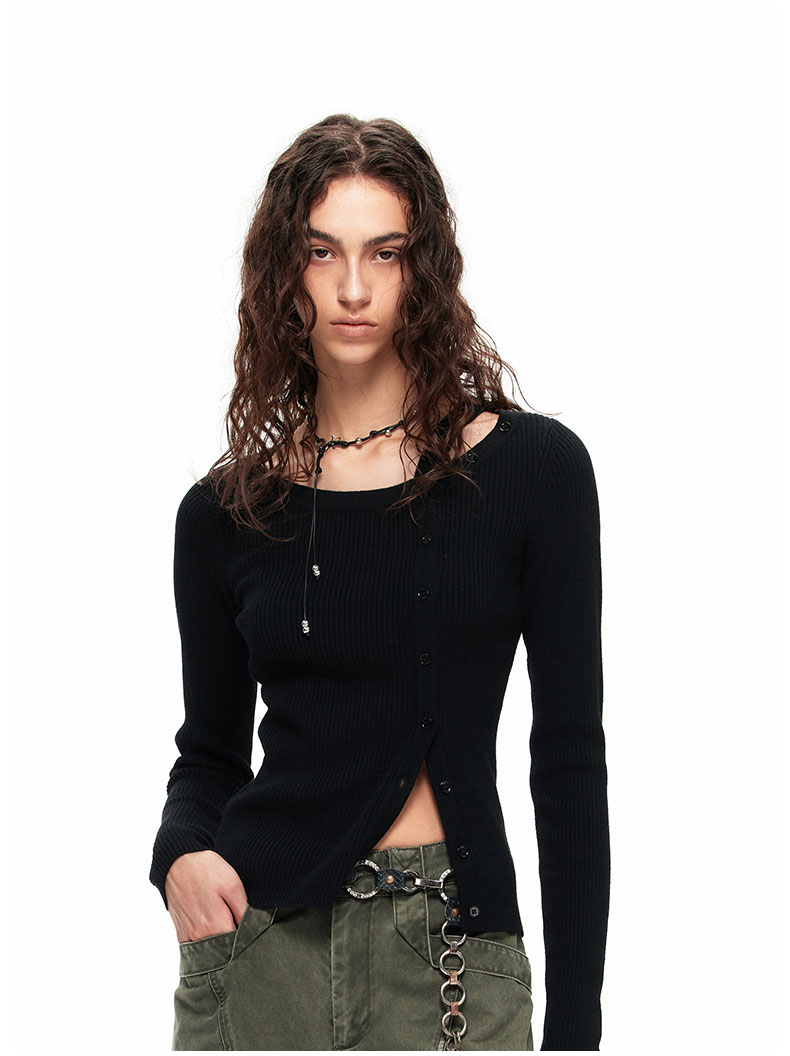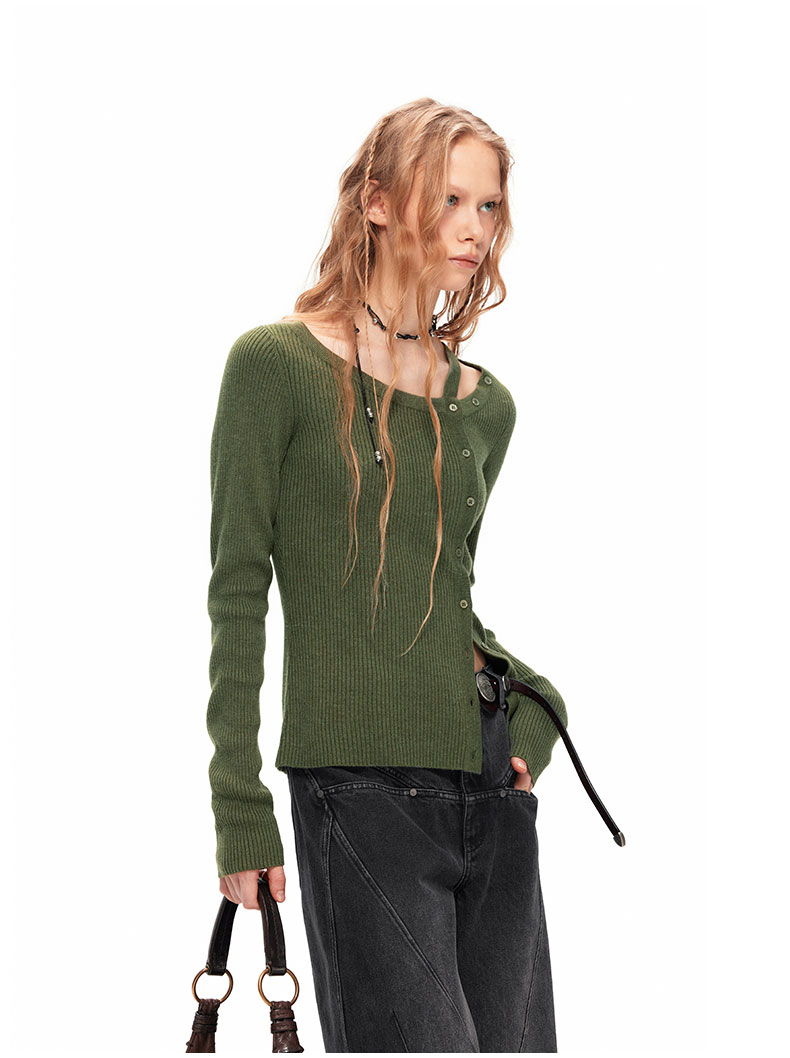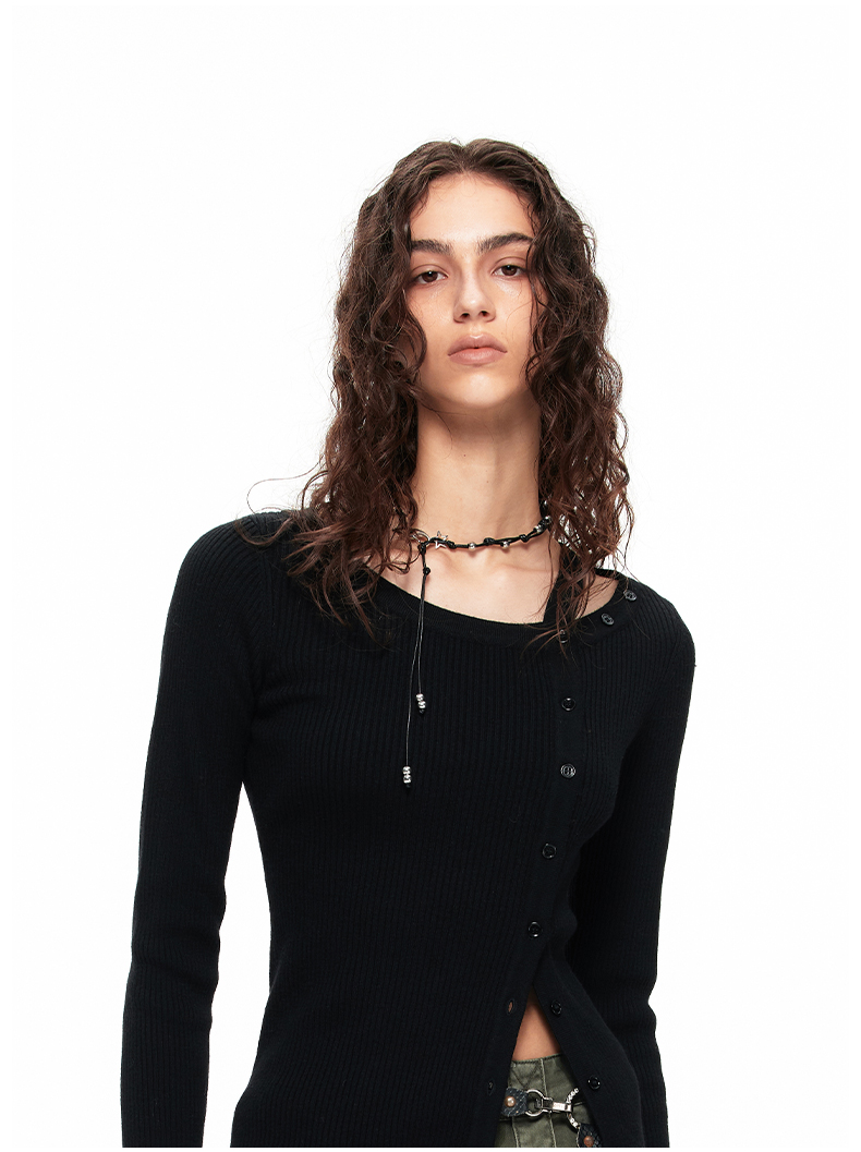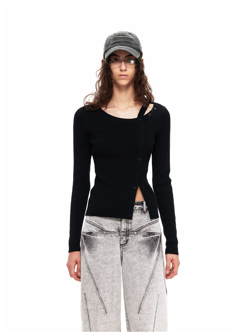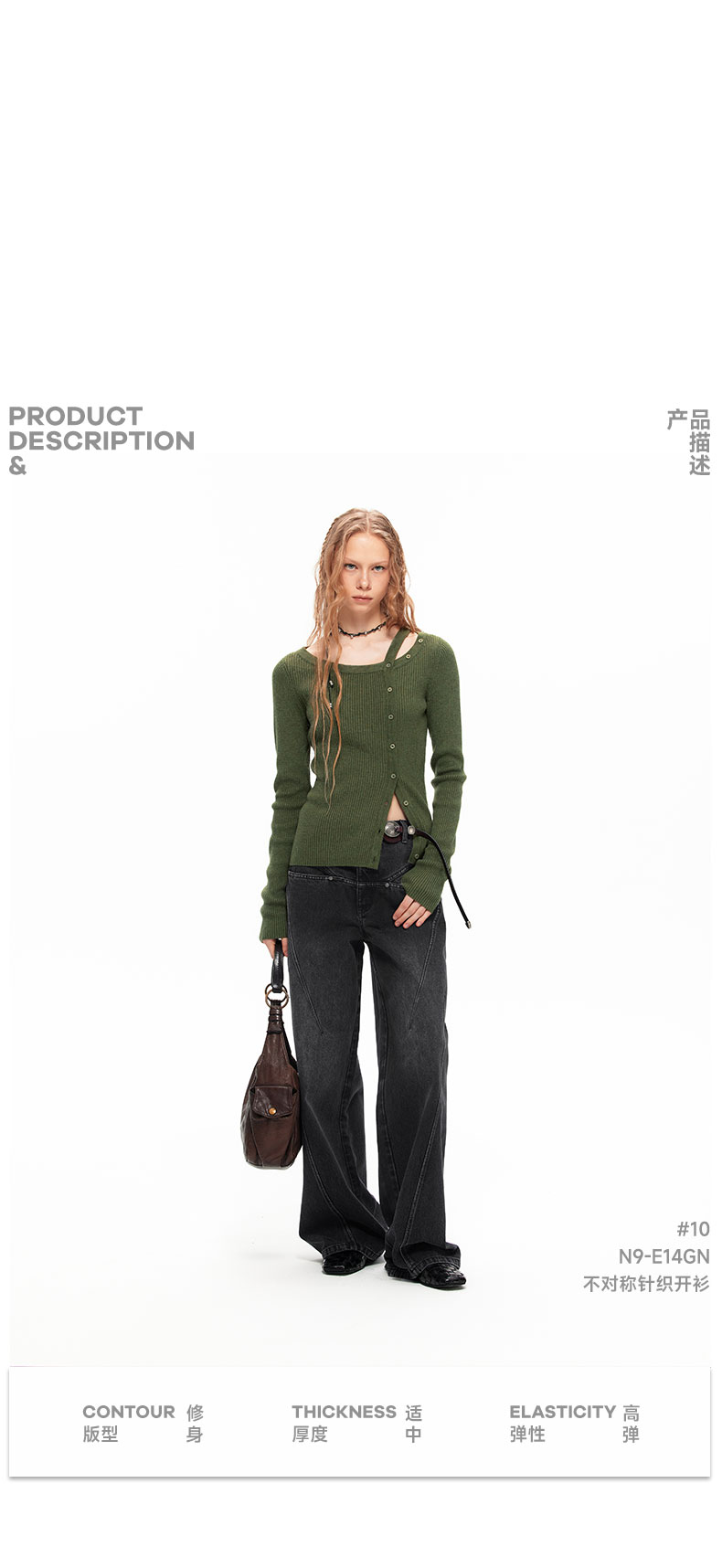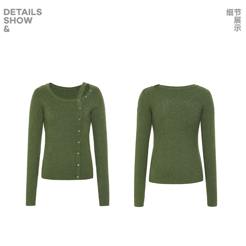 NUTH长袖针织衫女修身不对称简约百搭开衫上衣