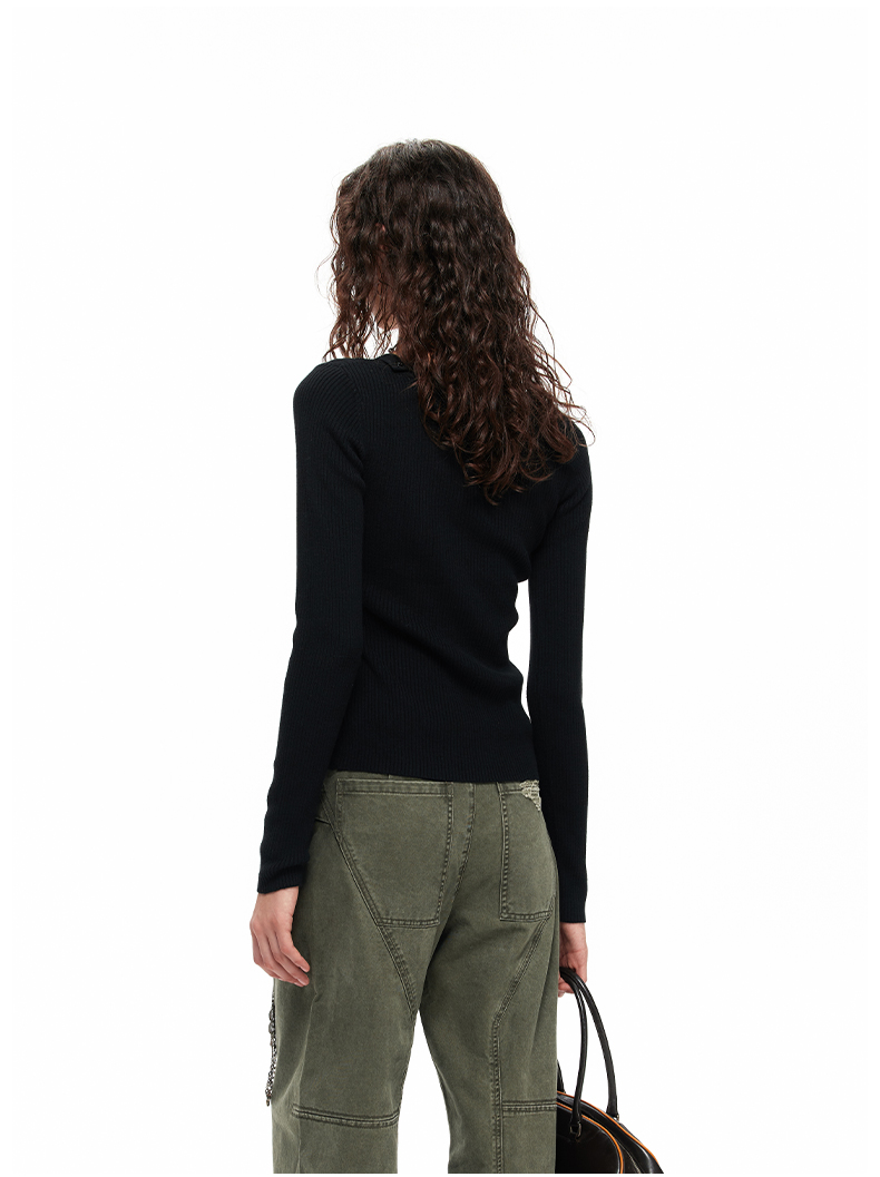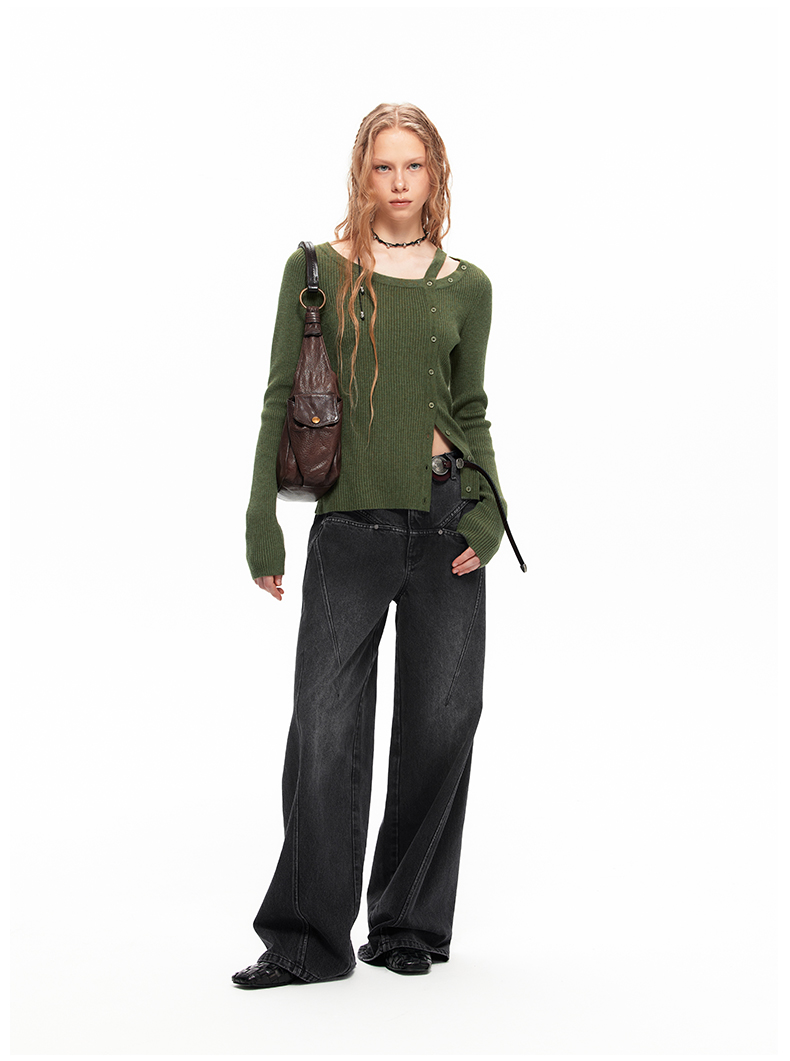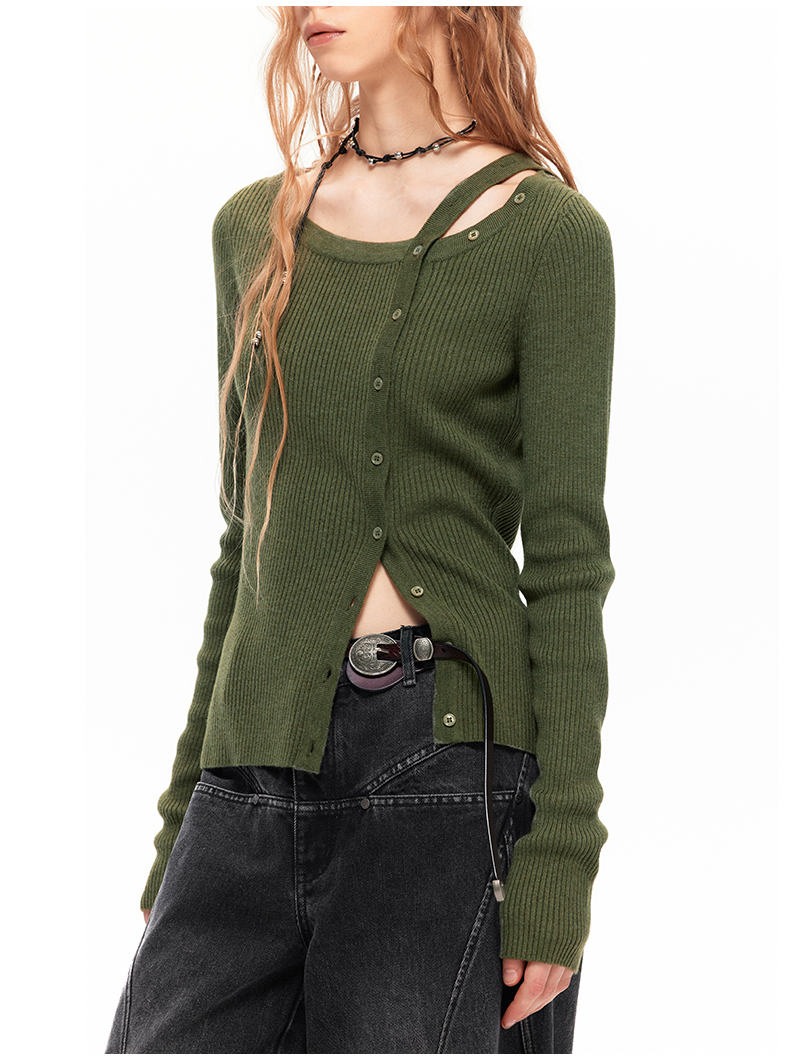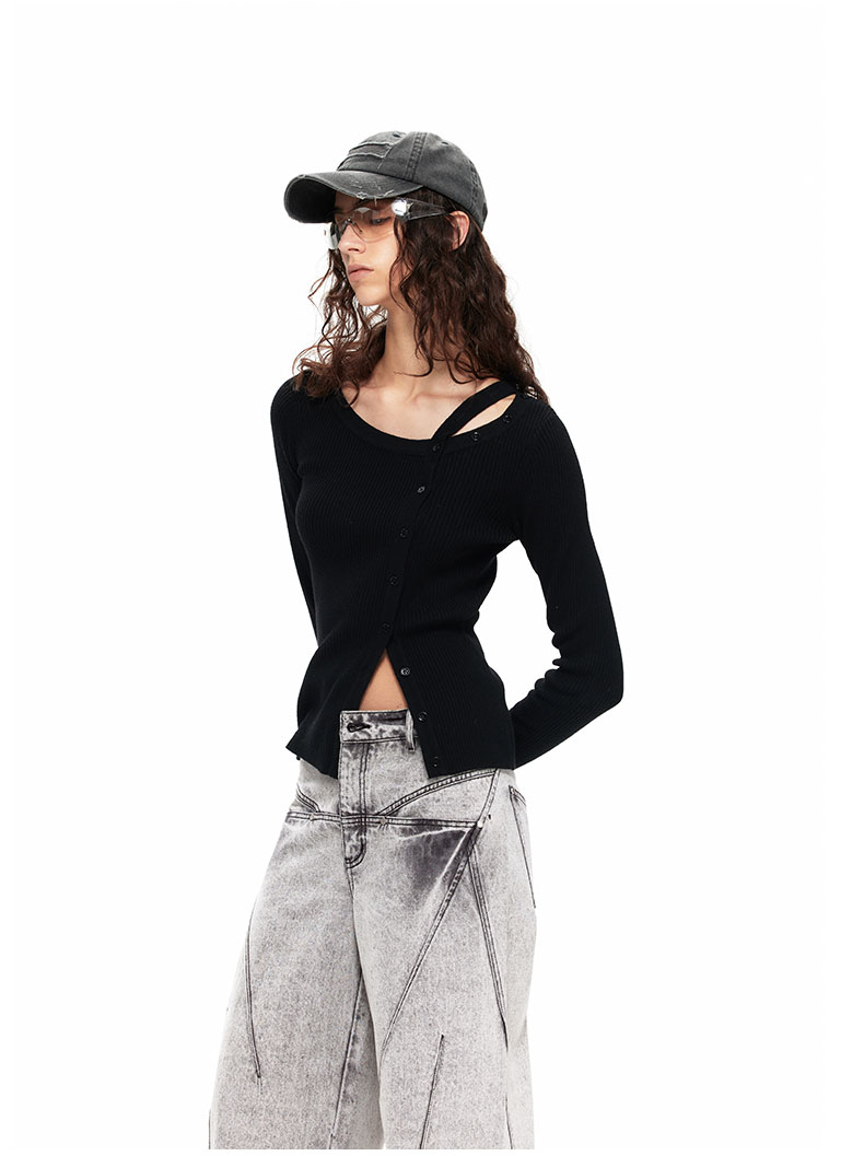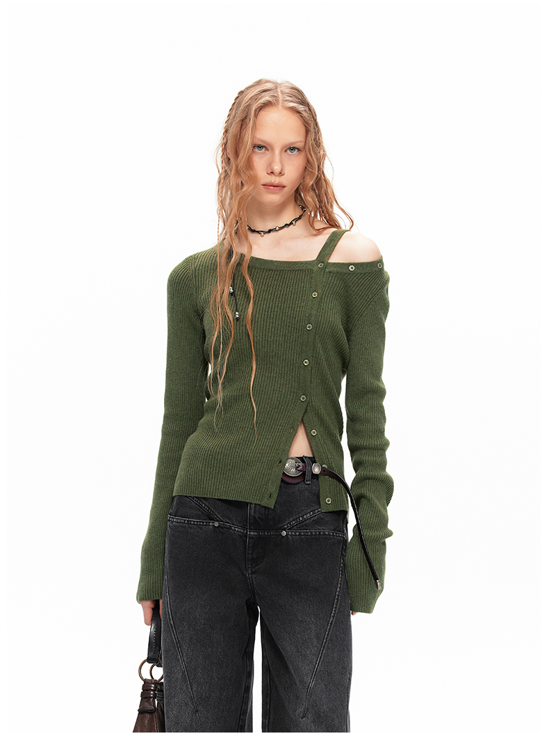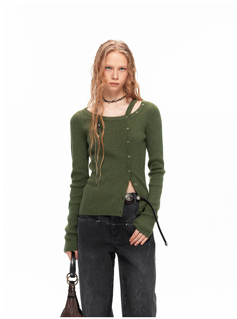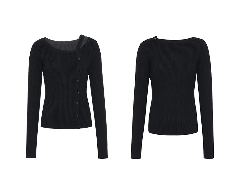 NUTH长袖针织衫女修身不对称简约百搭开衫上衣