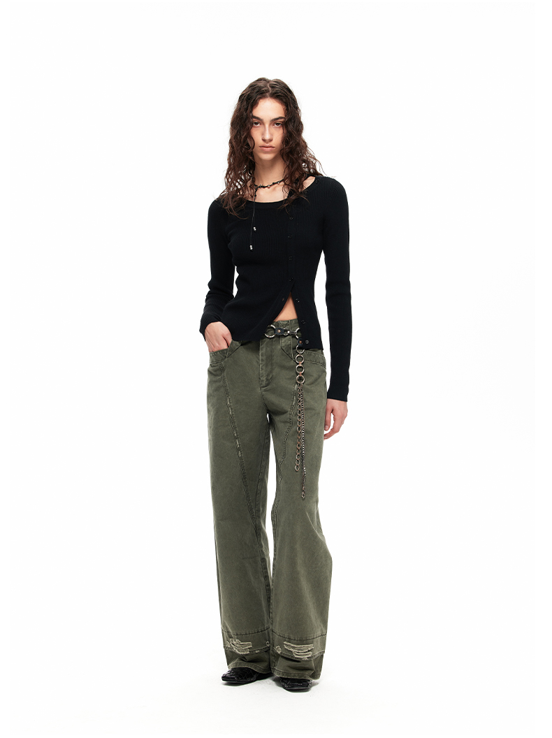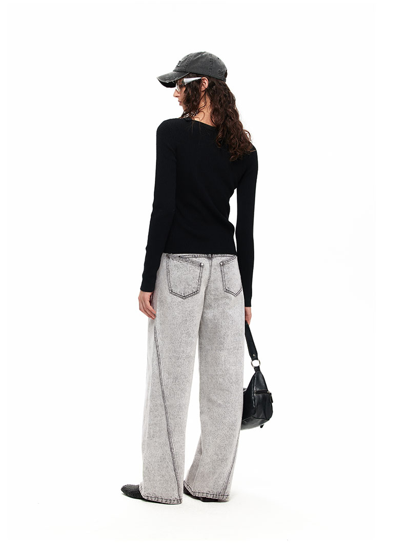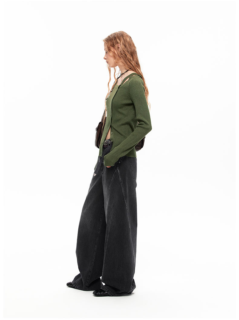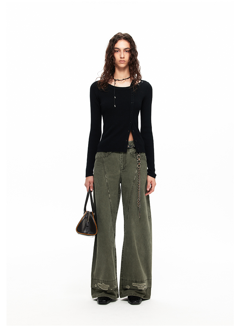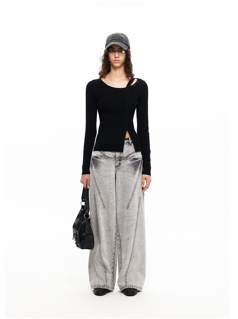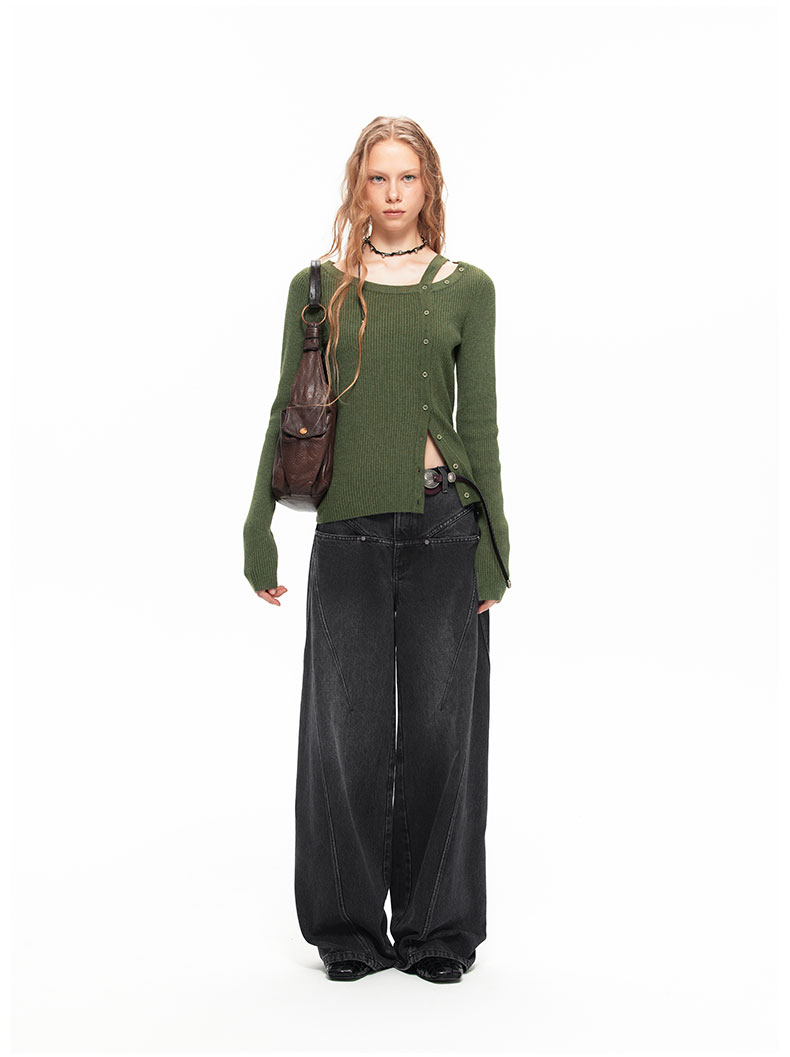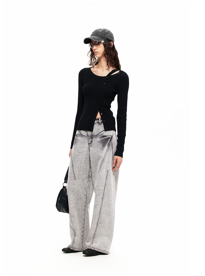 NUTH长袖针织衫女修身不对称简约百搭开衫上衣