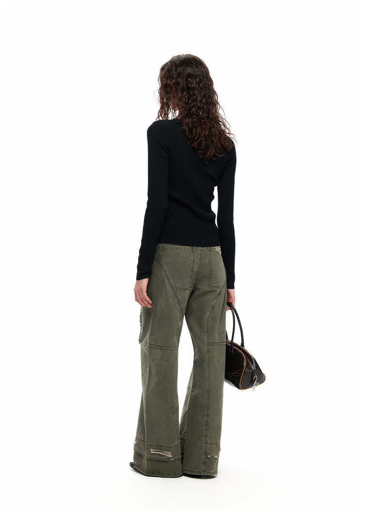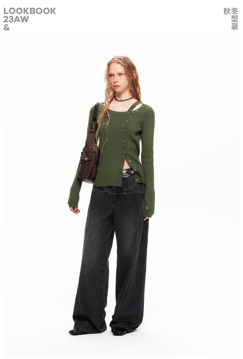 NUTH 深V领两穿宽松毛衣拼接假两件设计套头慵懒针织毛衣女