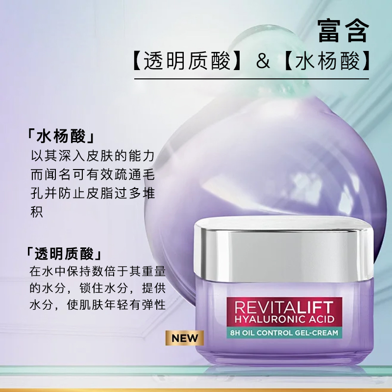 【保税仓】欧莱雅复颜玻尿酸水光充盈啫喱霜50ML新版【有盒有塑封】