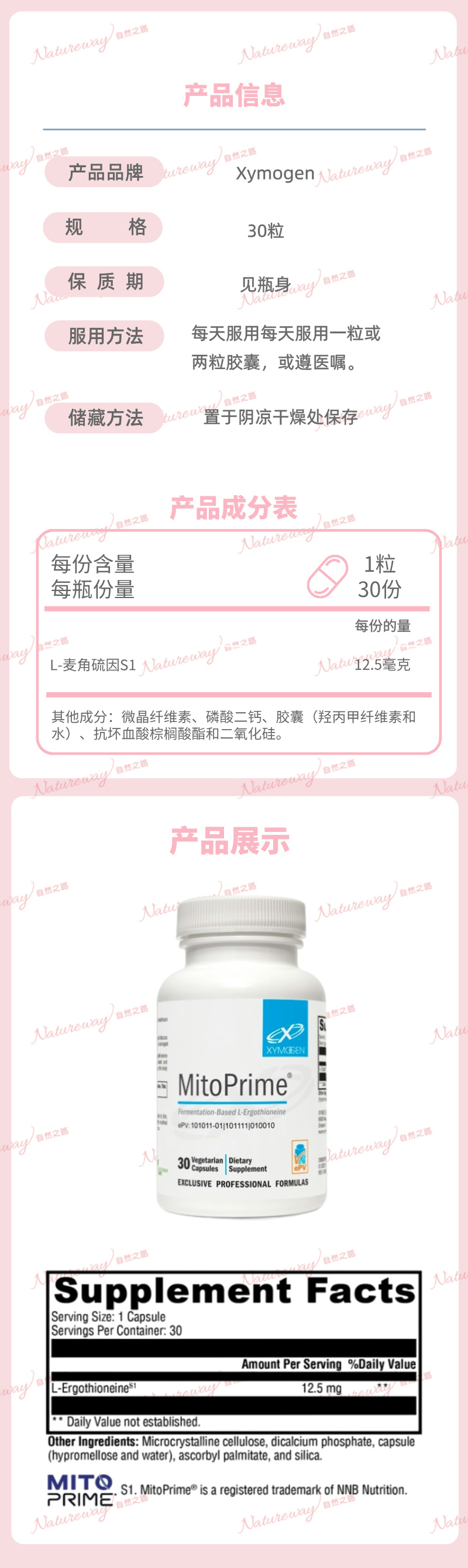 XYMOGEN麦角硫因MitoPrime抗yang化 谷胱甘肽平衡 30粒