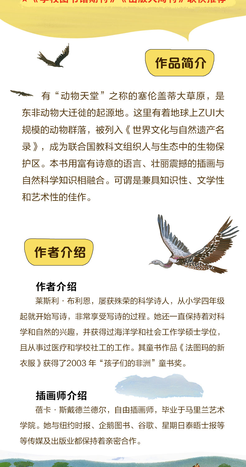 【筑桥】动物天堂之歌 塞伦盖蒂大草原 6岁+精装 儿童读物·科普百科