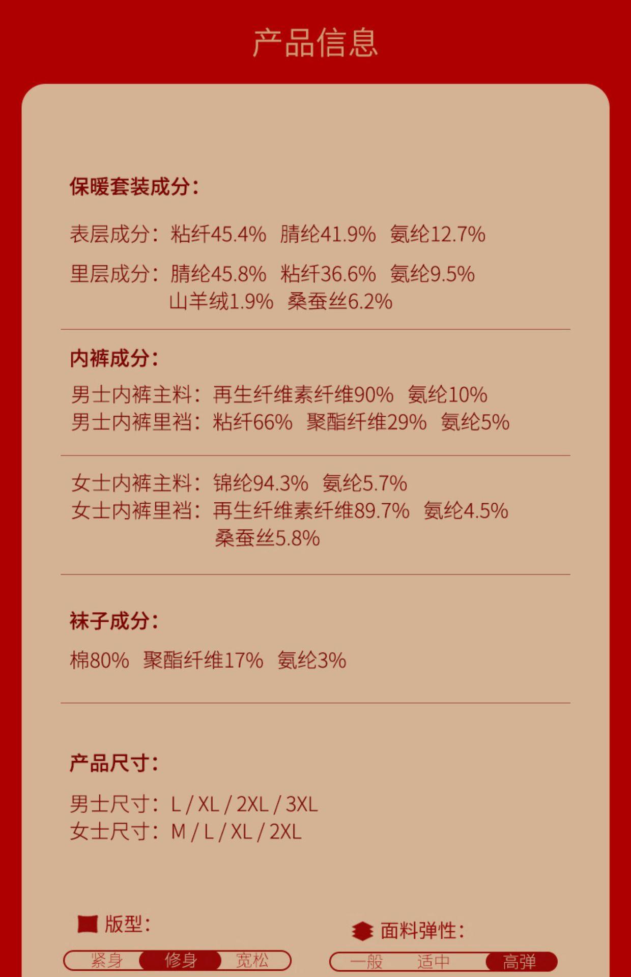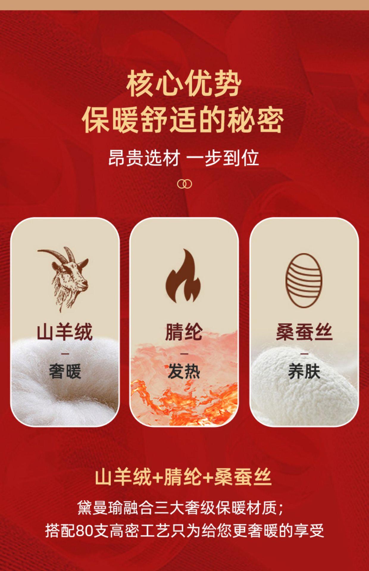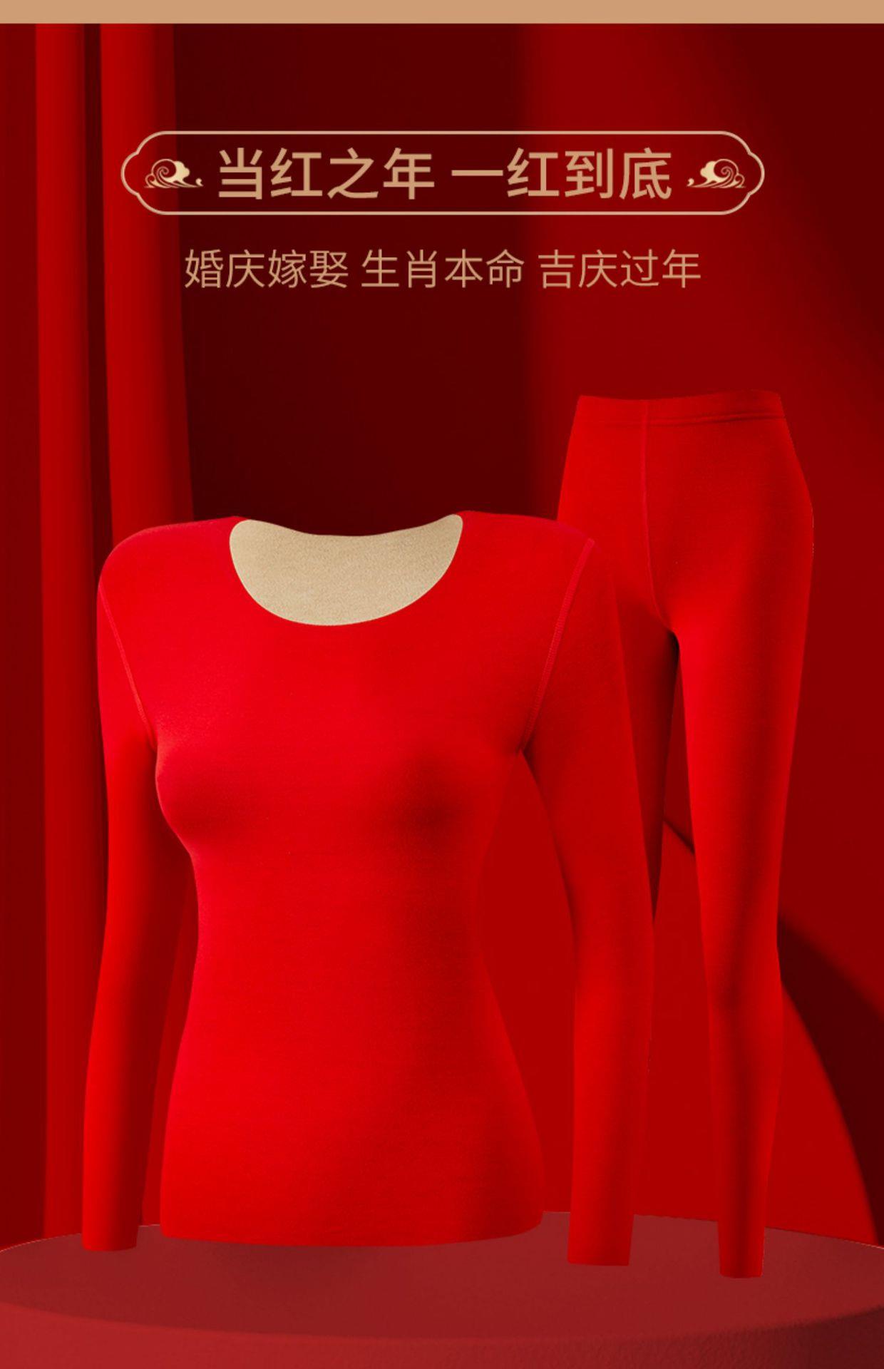 年货节!转运睡衣山羊绒蚕丝大红保暖内衣本命年套装男秋衣秋裤女士蚕丝德绒过年结婚