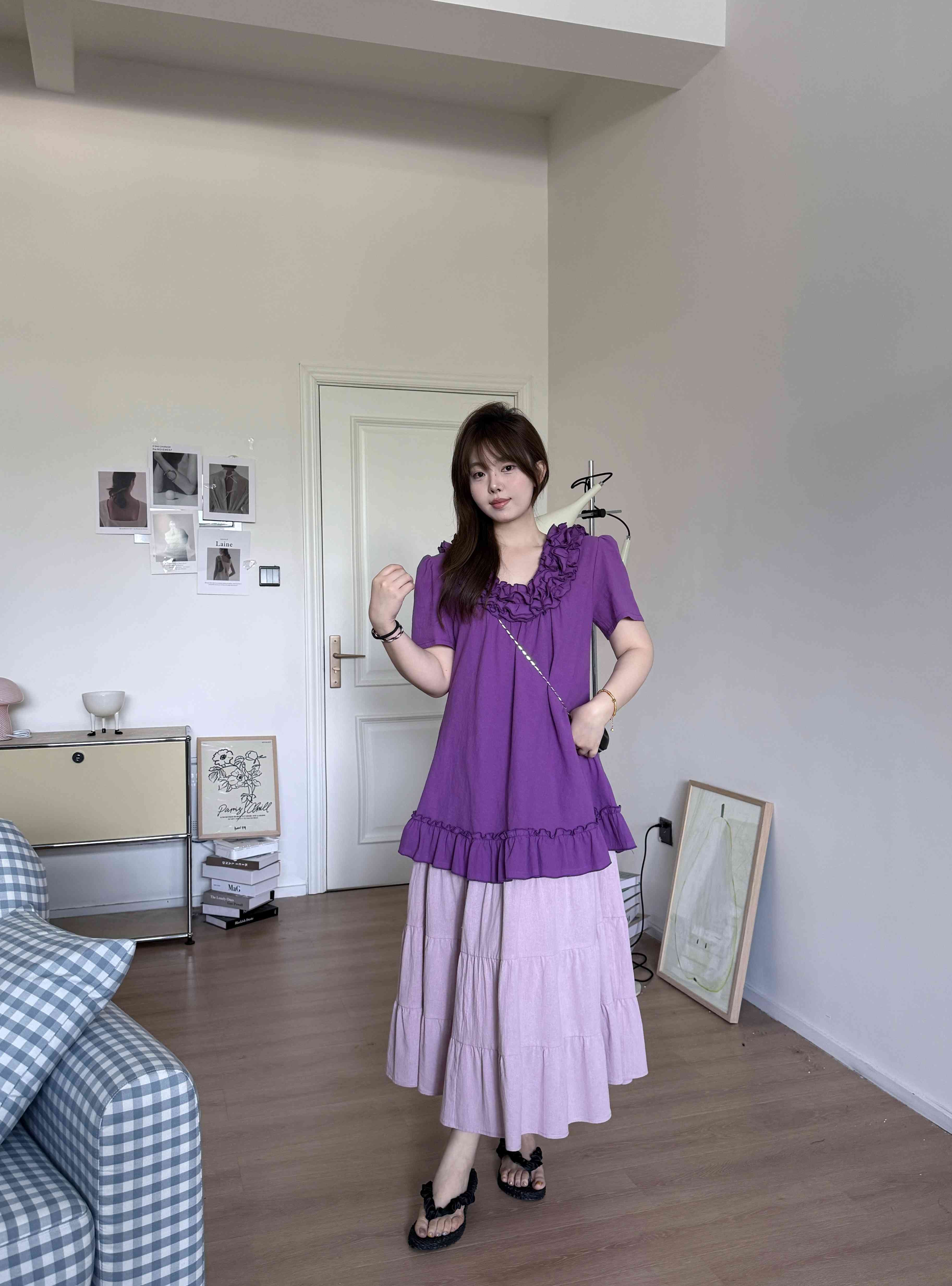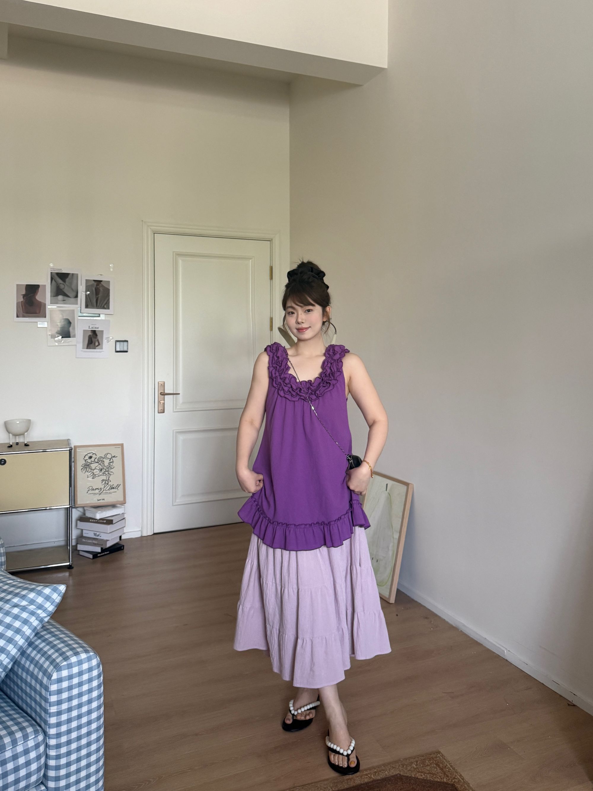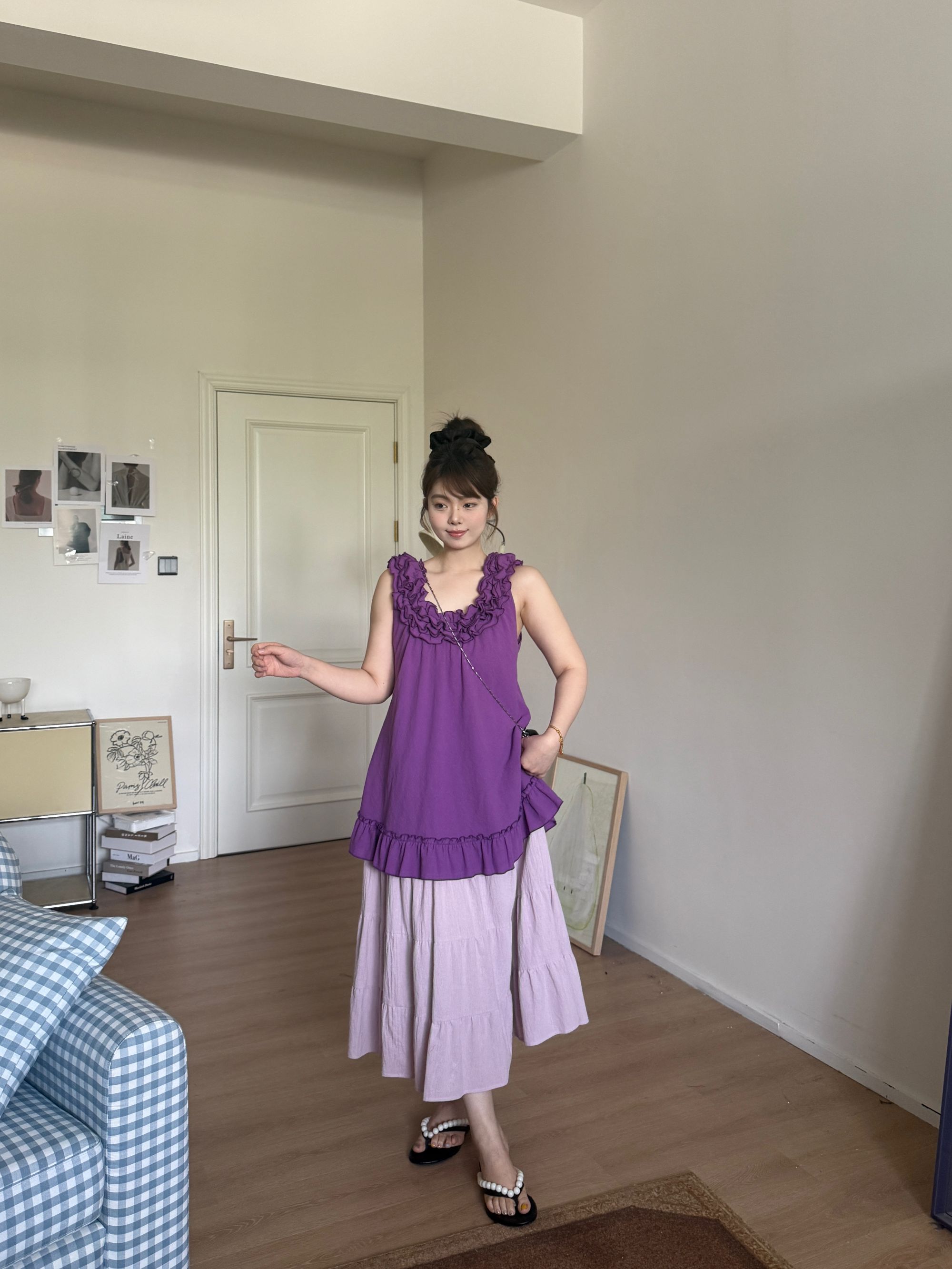 2025新品 软软同款【夏日葡萄冰】气质韩版设计感两个版本花边领口拼接连衣裙