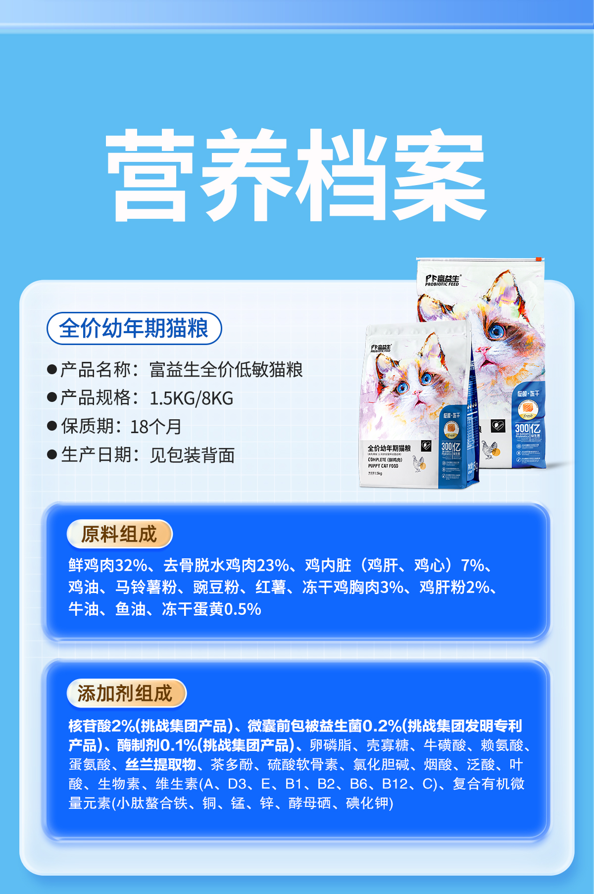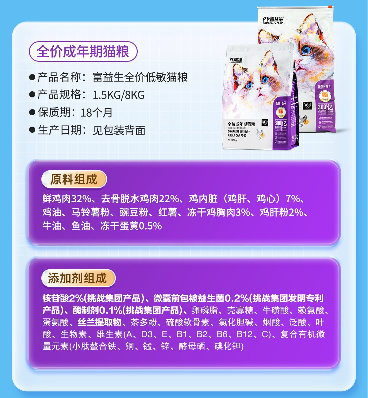 严选 | 富益生益生菌猫粮低敏全价幼猫成猫鲜肉鸡肉冻干粮营养无谷猫主粮