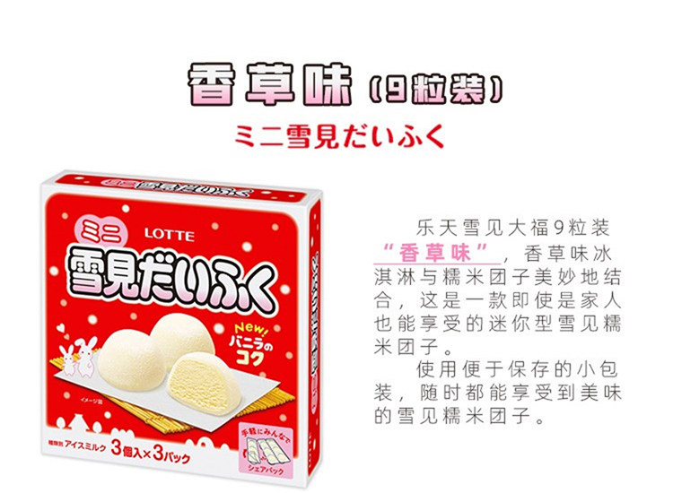 【直送到家】乐天雪见大福(1盒9粒装)191.7g*3盒 日本进口糯米糍雪糕 北海道香草奶油团子 网红冰淇淋(冷链商品不退不换)