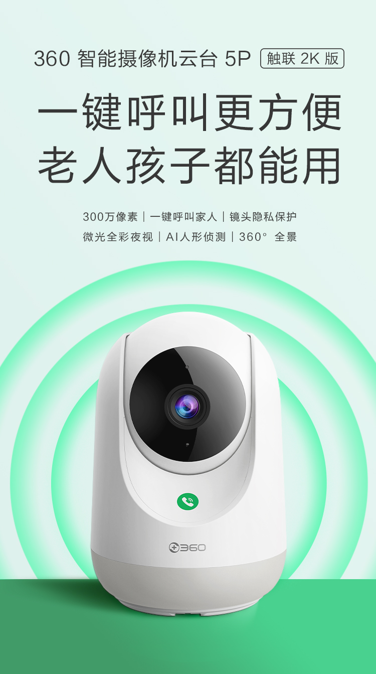 360 摄像头家用监控摄像头智能摄像机云台版300万网络wifi高清全彩夜视双向通话360度旋转5P触联2K版