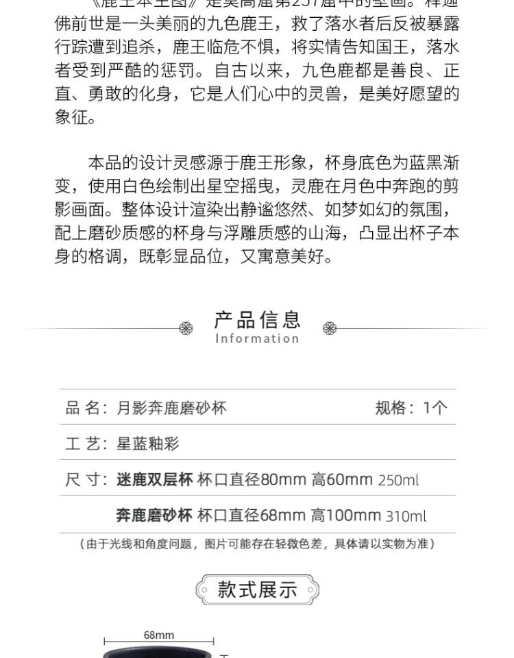 251021售罄下架|敦煌研究院【月影奔鹿磨砂杯】博物馆文创杯子国潮生日礼物女生