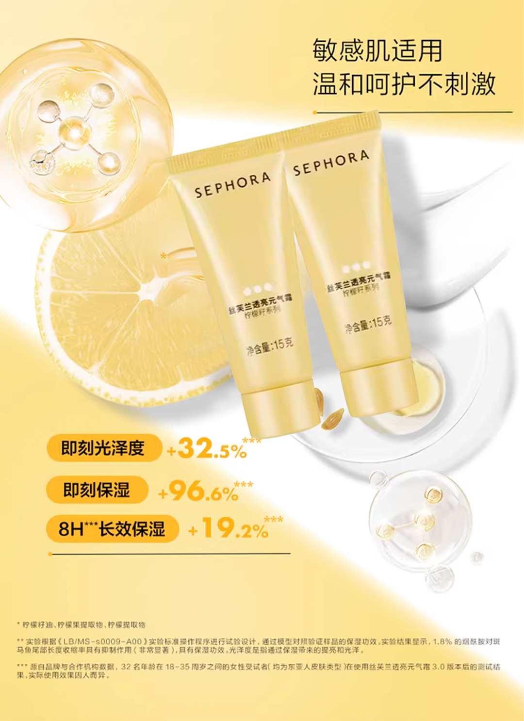 【丝芙兰柠檬籽素颜霜】修颜提亮 拯救素颜 15ml*2支