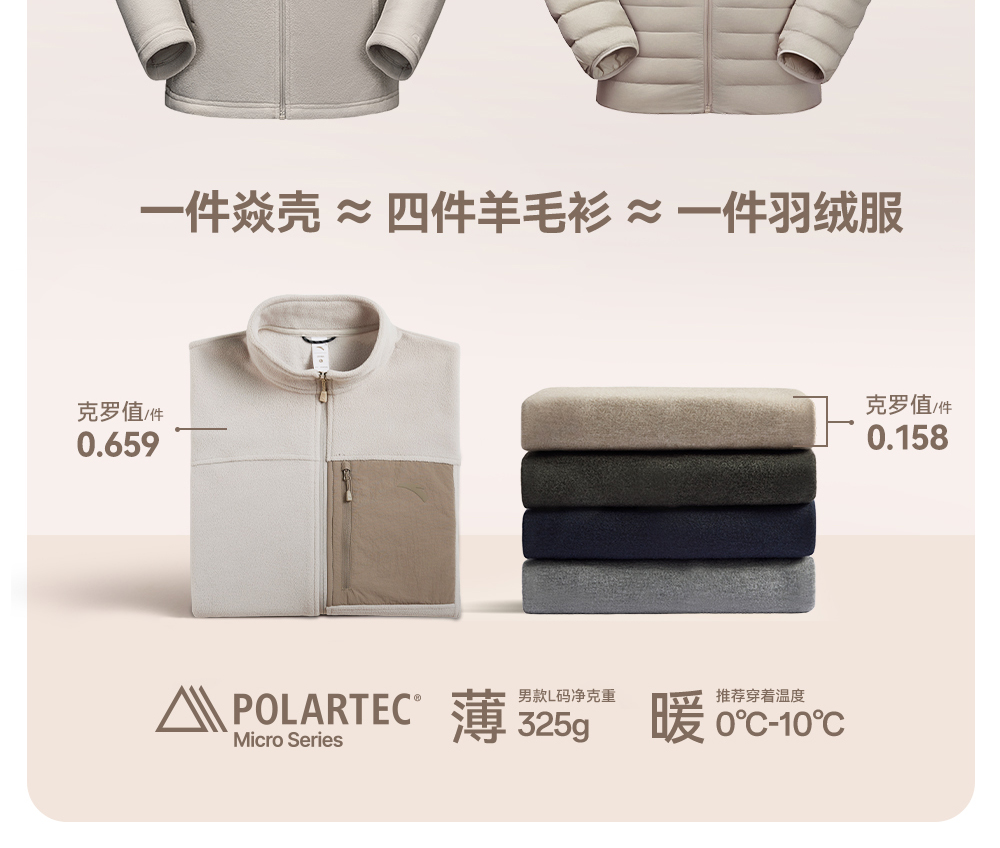 超级安踏焱壳 | Polartec抓绒衣男秋户外保暖外套内胆152546707U
