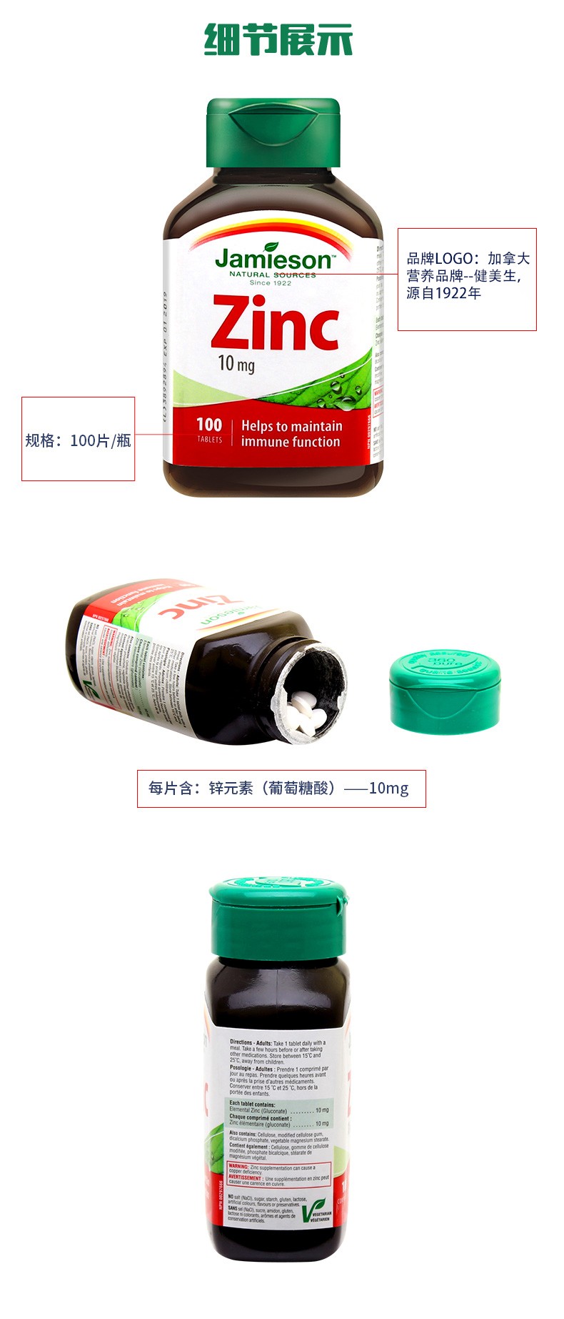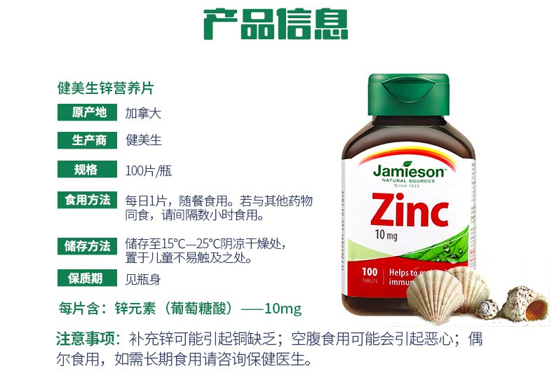【保税仓】JAMIESON锌营养片10mg100片