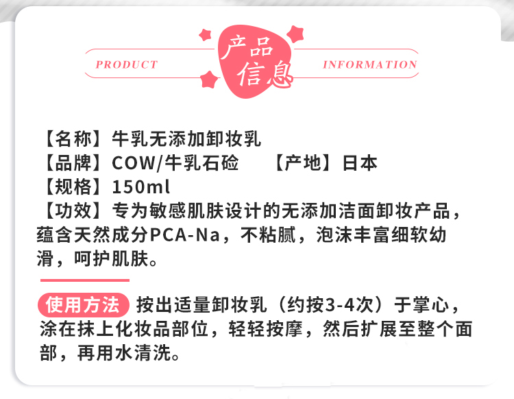 【保税仓】COW/牛乳石碱无添加卸妆乳带泵150mL