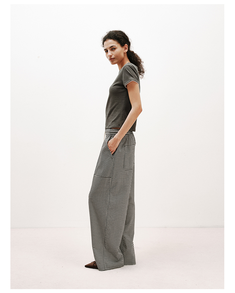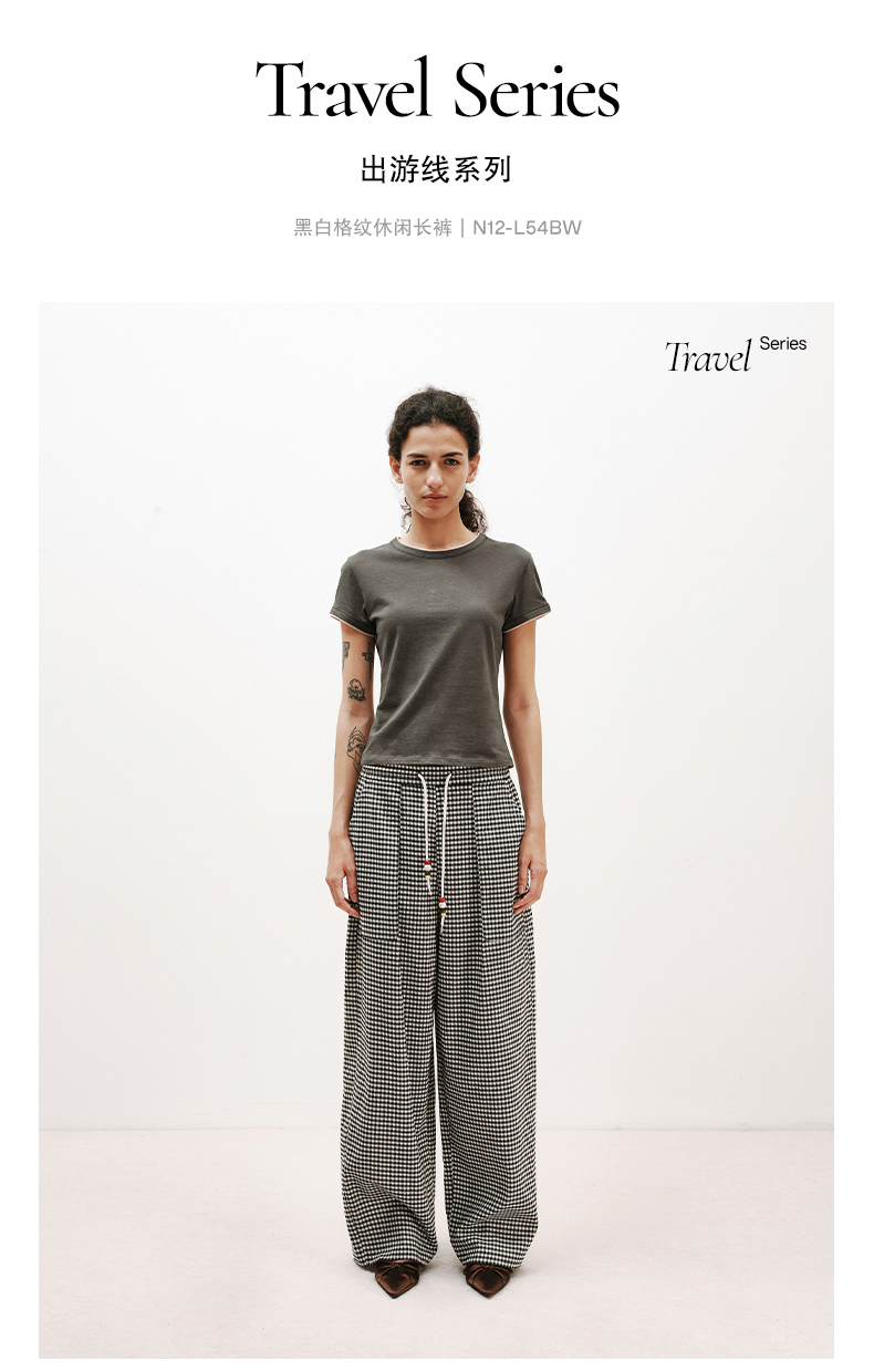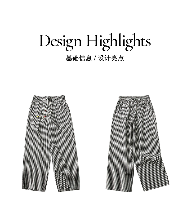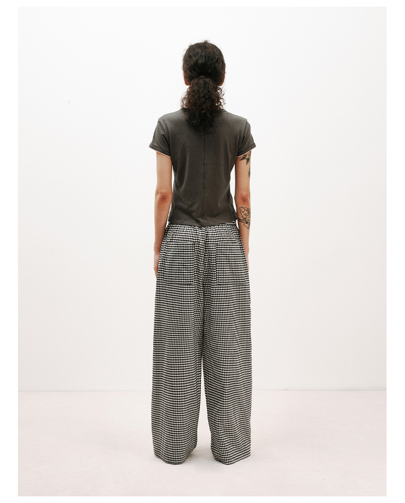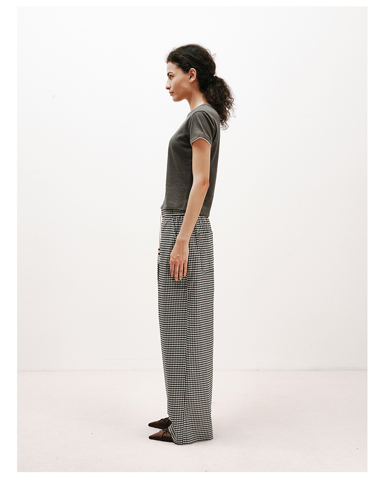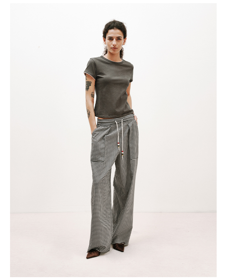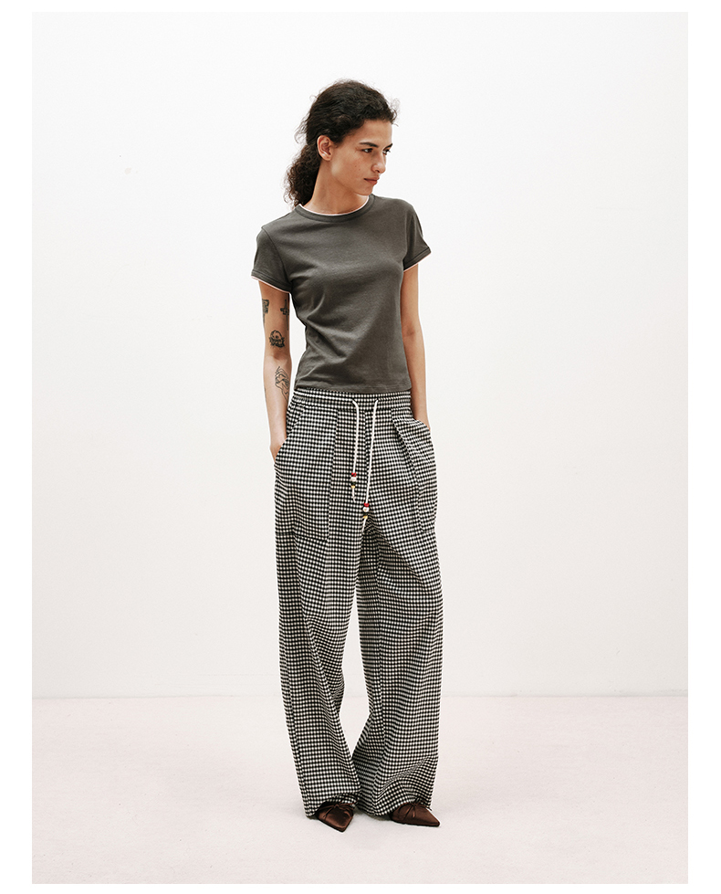 NUTH轻薄复古黑白格纹宽松抽绳直筒休闲裤女夏季