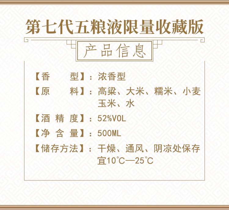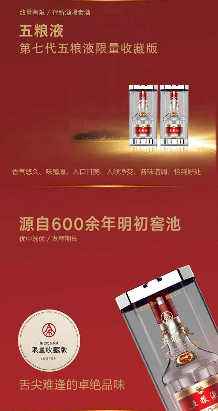 【推荐】五粮液52度普五第七代经典限量收藏版整箱装500ml*6瓶