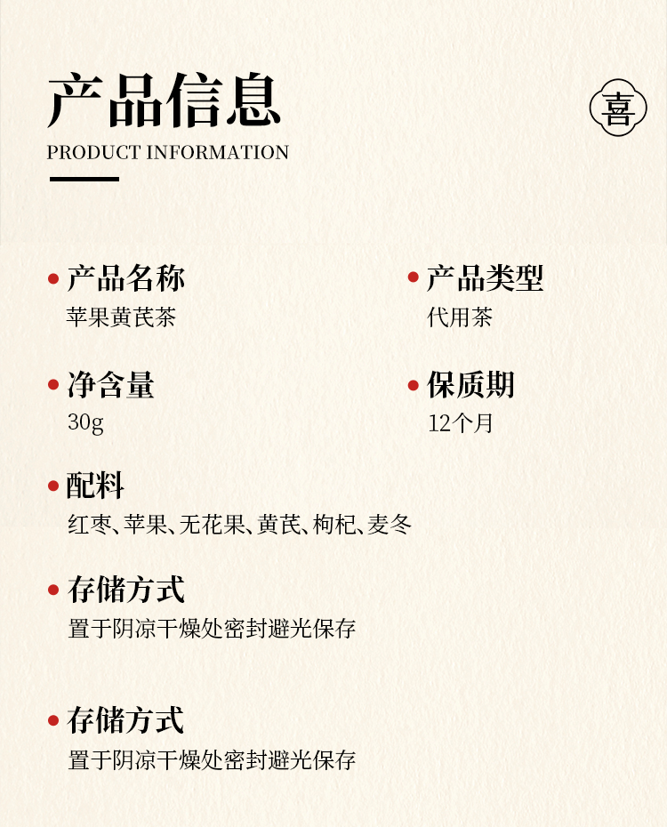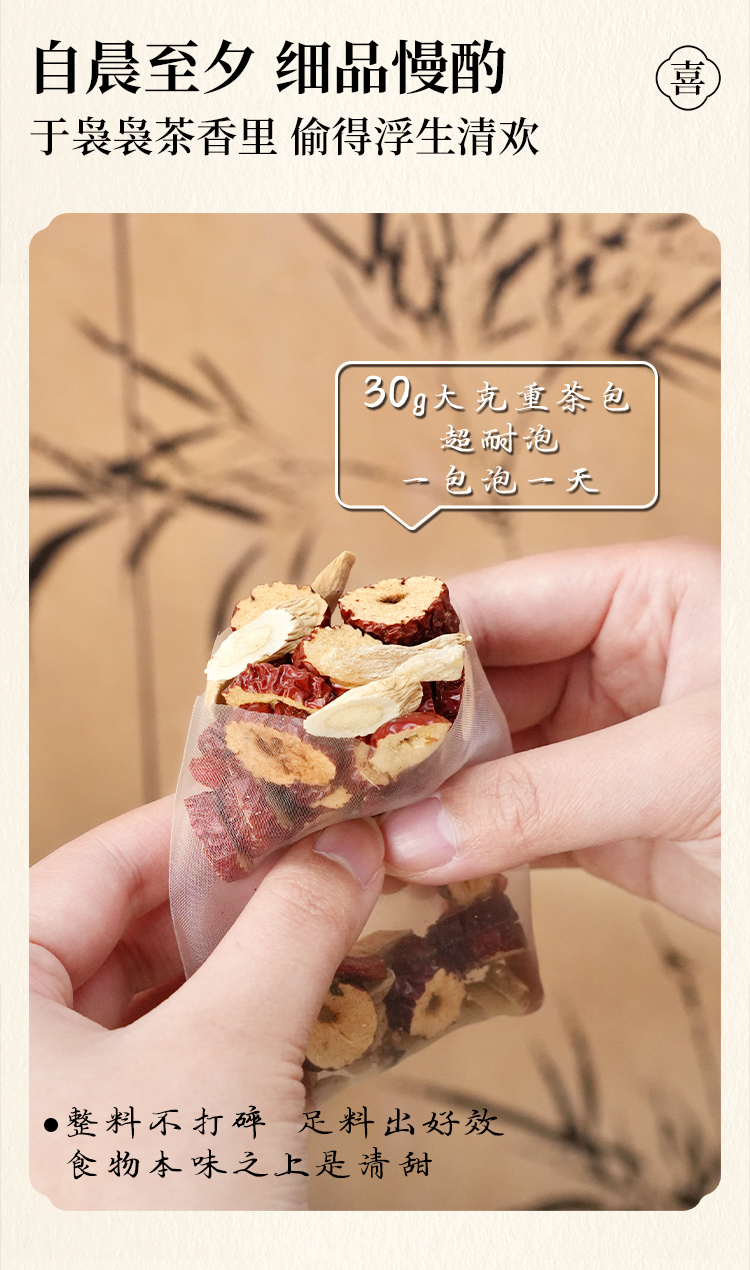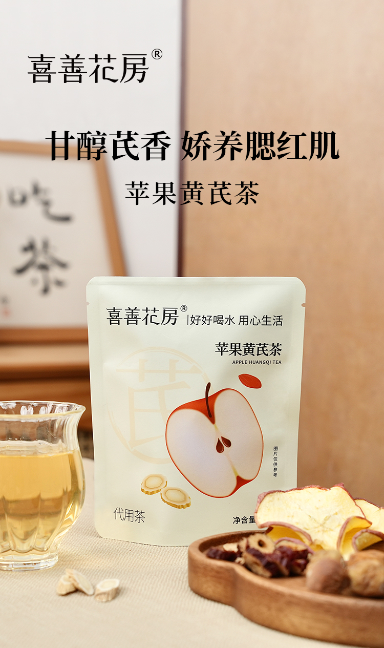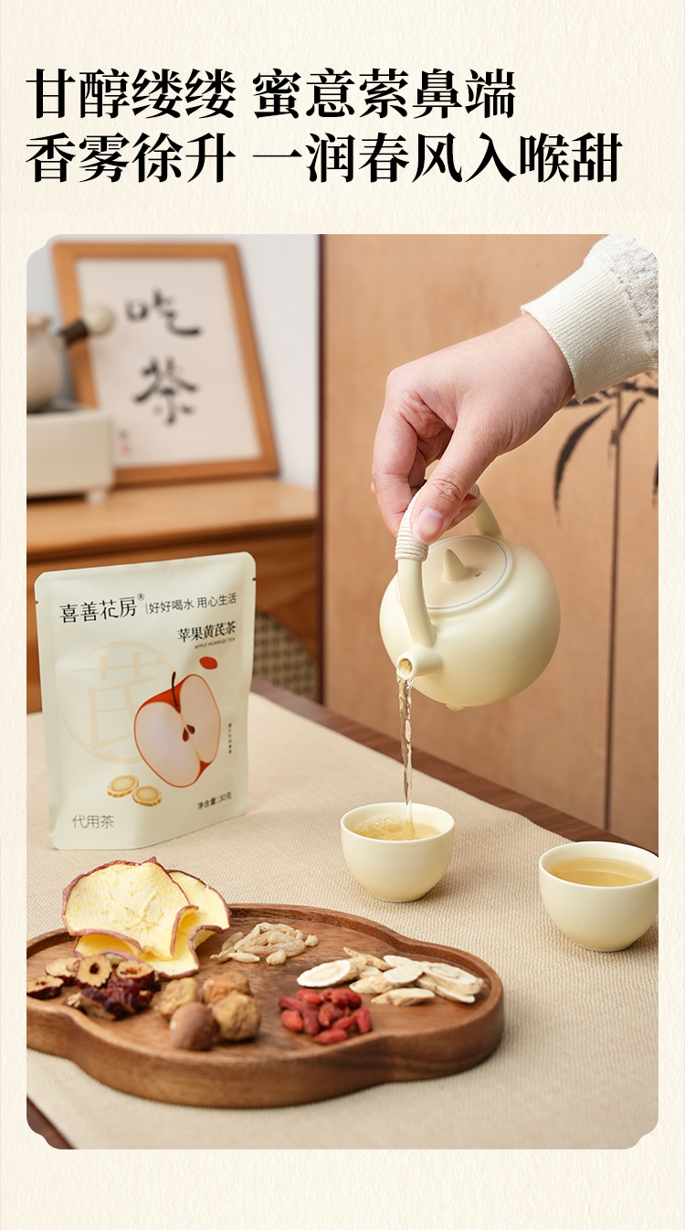 【喜善花房苹果黄芪茶】 6 味道地食材素颜红润茶 古方新升级,30g加大茶包,一包能泡一整天
