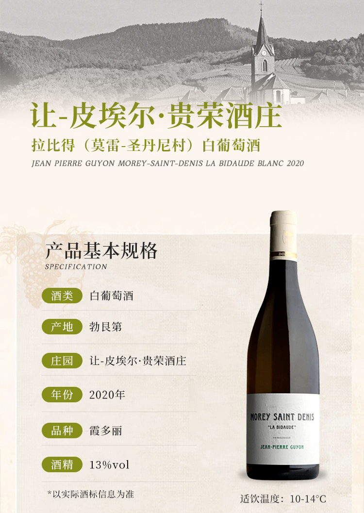 Jean Pierre Guyon Morey Saint Denis Blanc La Bidaude 让-皮埃尔·贵荣酒庄拉比得(莫雷-圣丹尼村)白葡萄酒 2020