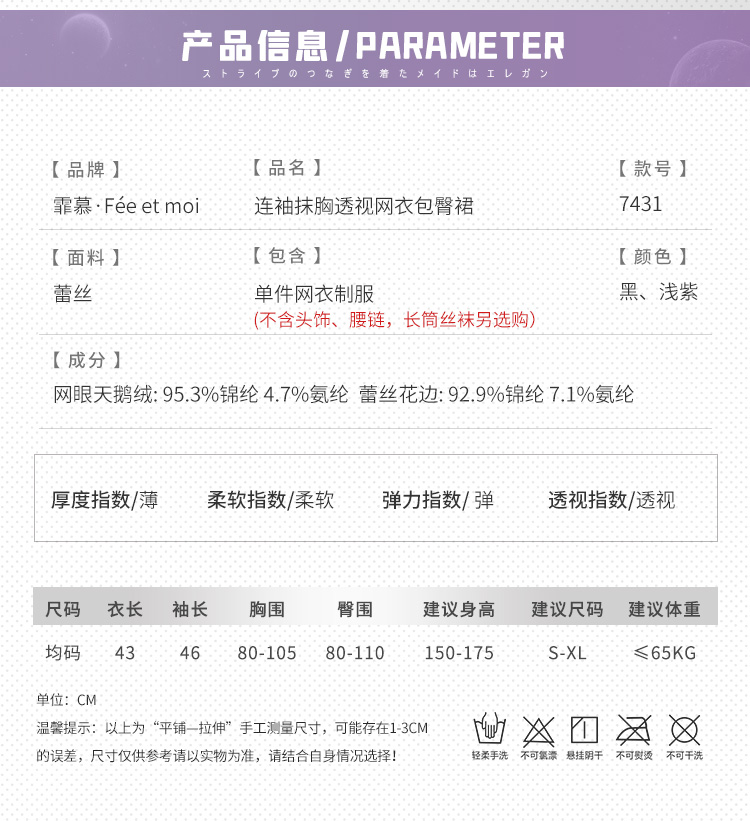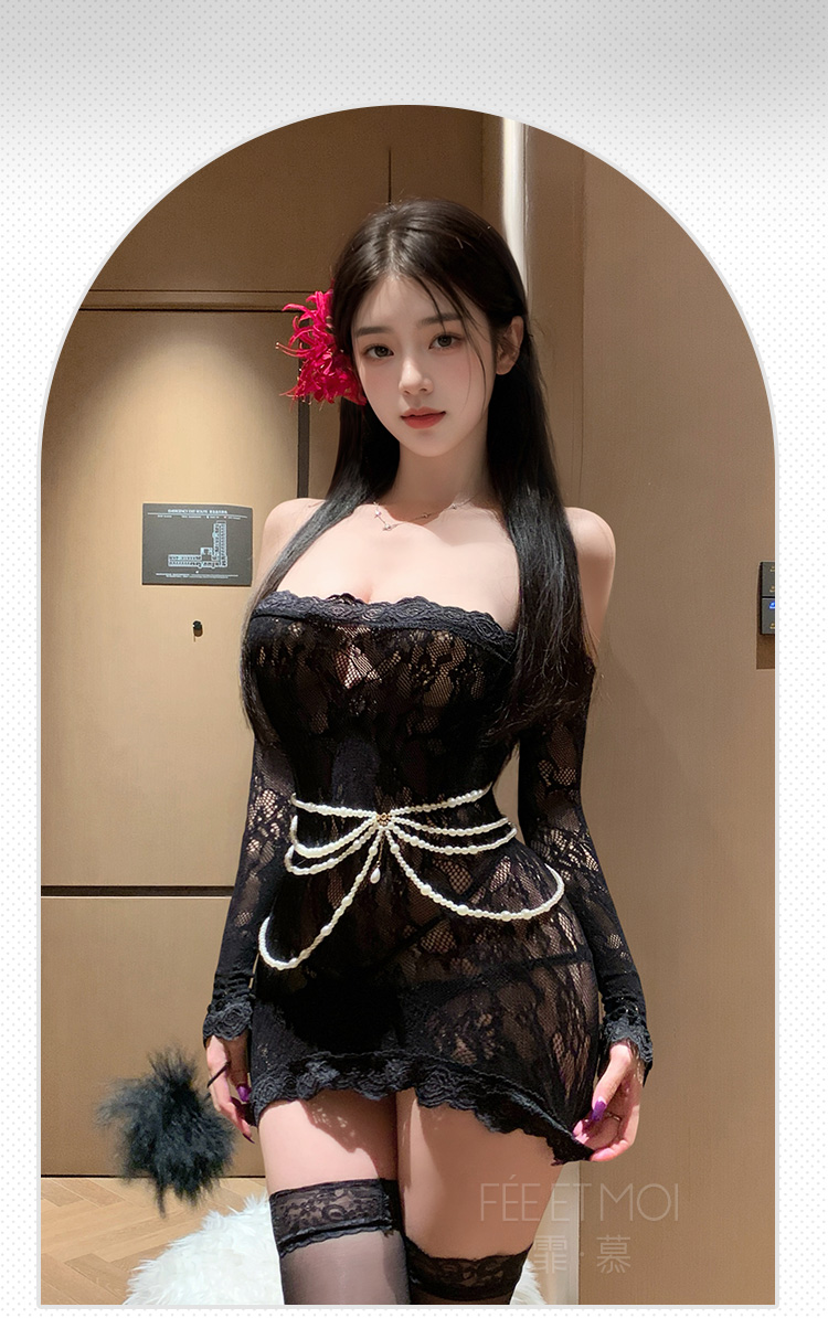 【情趣内衣】霏慕 连袖抹胸透视网衣包臀裙ZY7431
