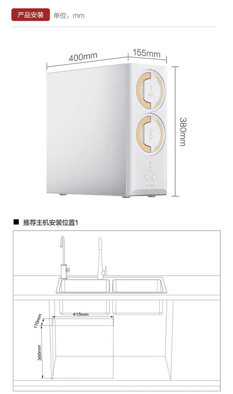 方太(FOTILE)净水器家用直饮净水机饮水机一体母婴级矿物质健康水大流量厨房厨下式NSP选择过滤1.7L/分H2EA