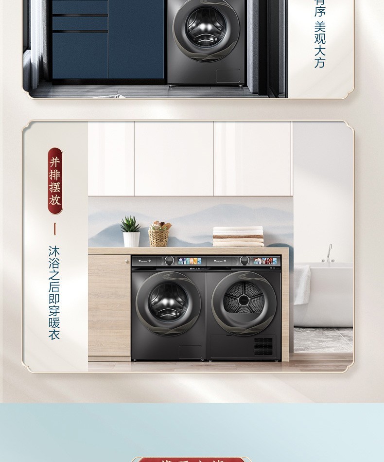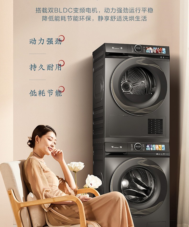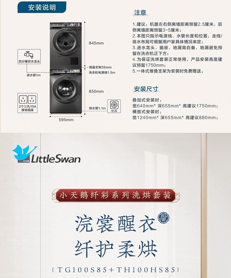 小天鹅(LittleSwan)纤彩系列洗烘套装10kg滚筒洗衣全自动+热泵烘干 超微净泡水魔方 TG100S85+TH100HS85