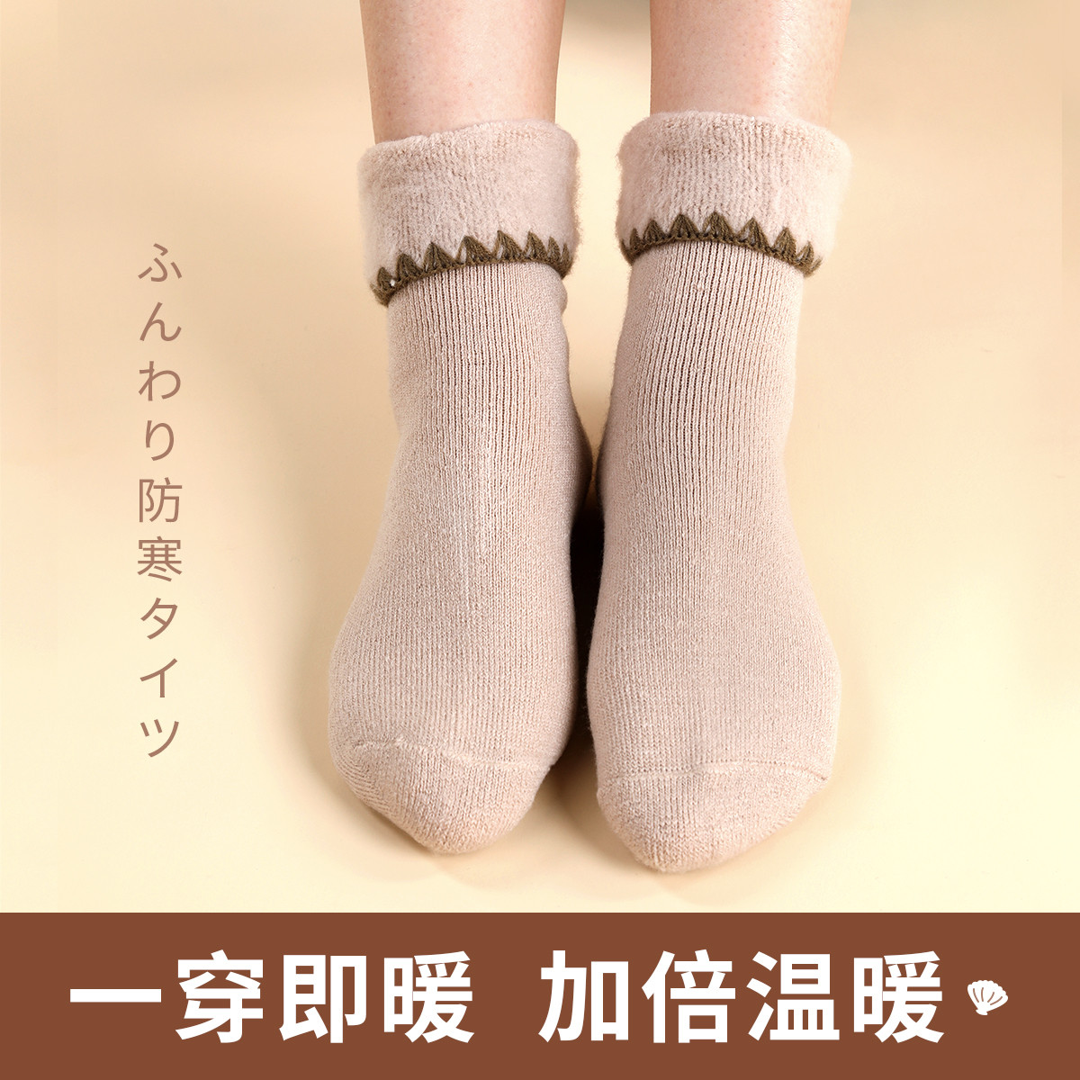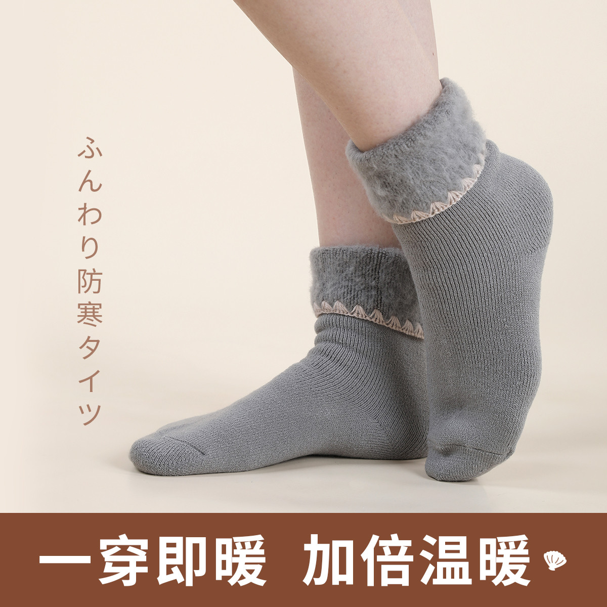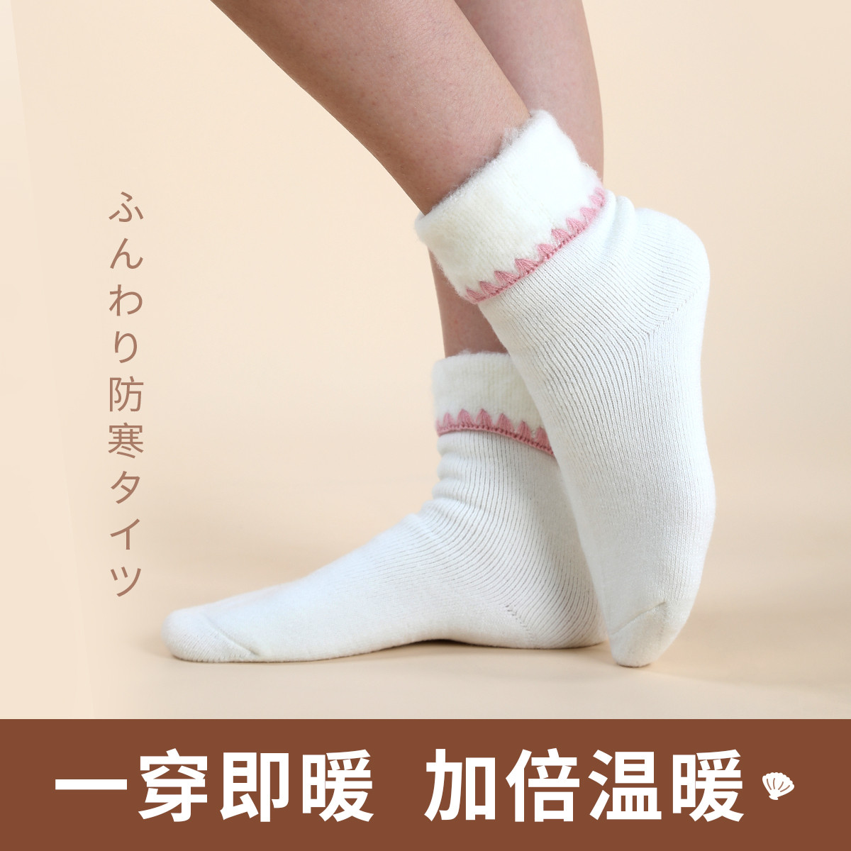 厚木Atsugi 【3双装】百搭可爱加厚里起毛保暖纯色图案休闲居家袜多色翻边短袜 RGA3572
