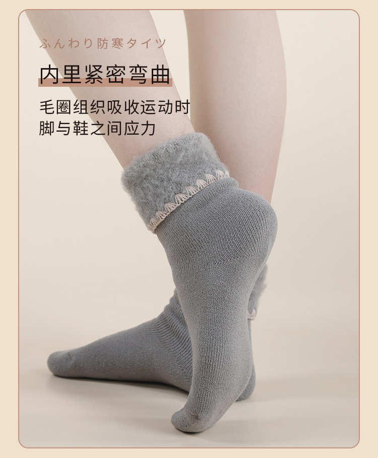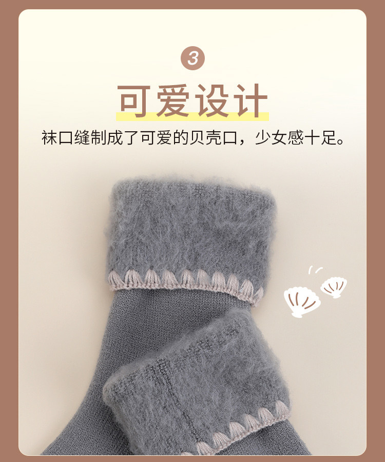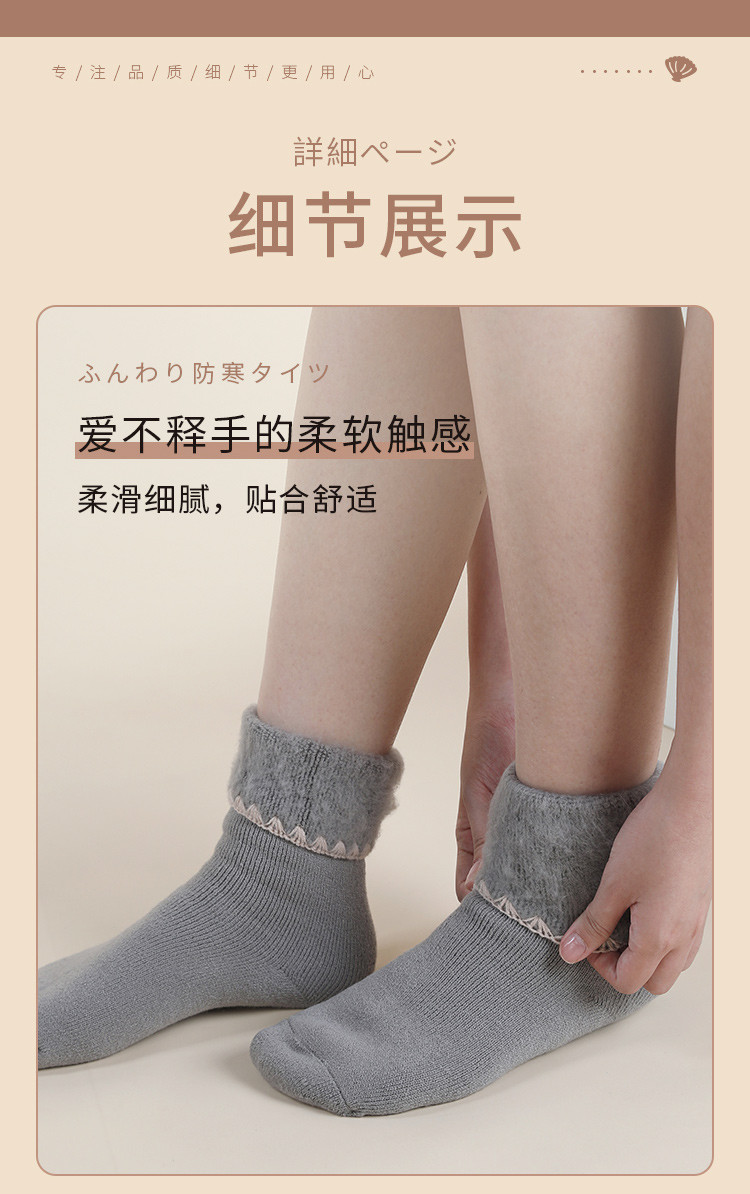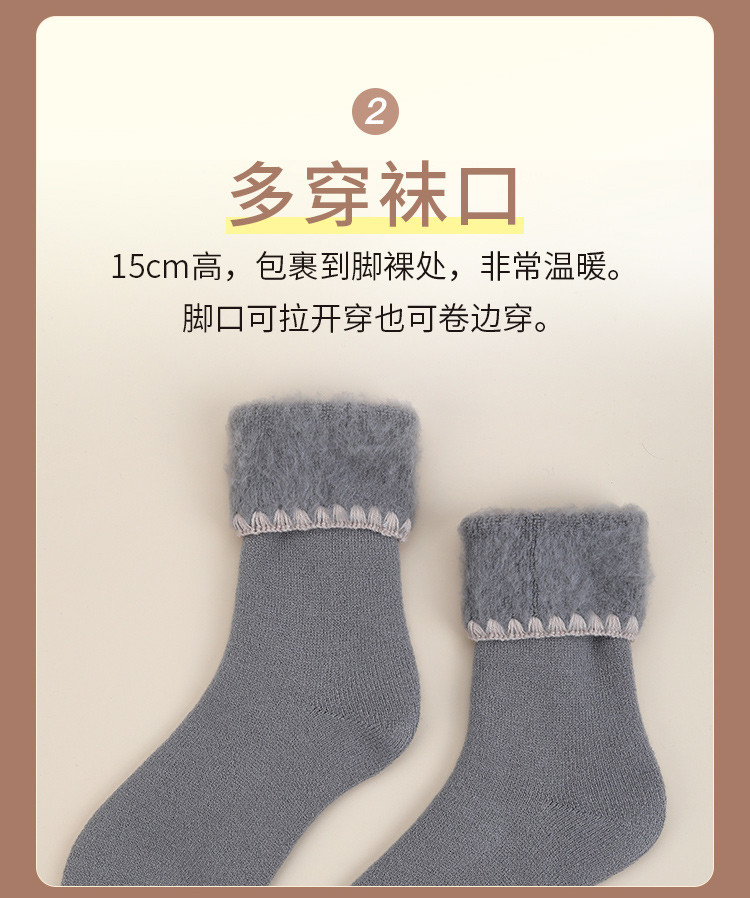 厚木Atsugi 【3双装】百搭可爱加厚里起毛保暖纯色图案休闲居家袜多色翻边短袜 RGA3572