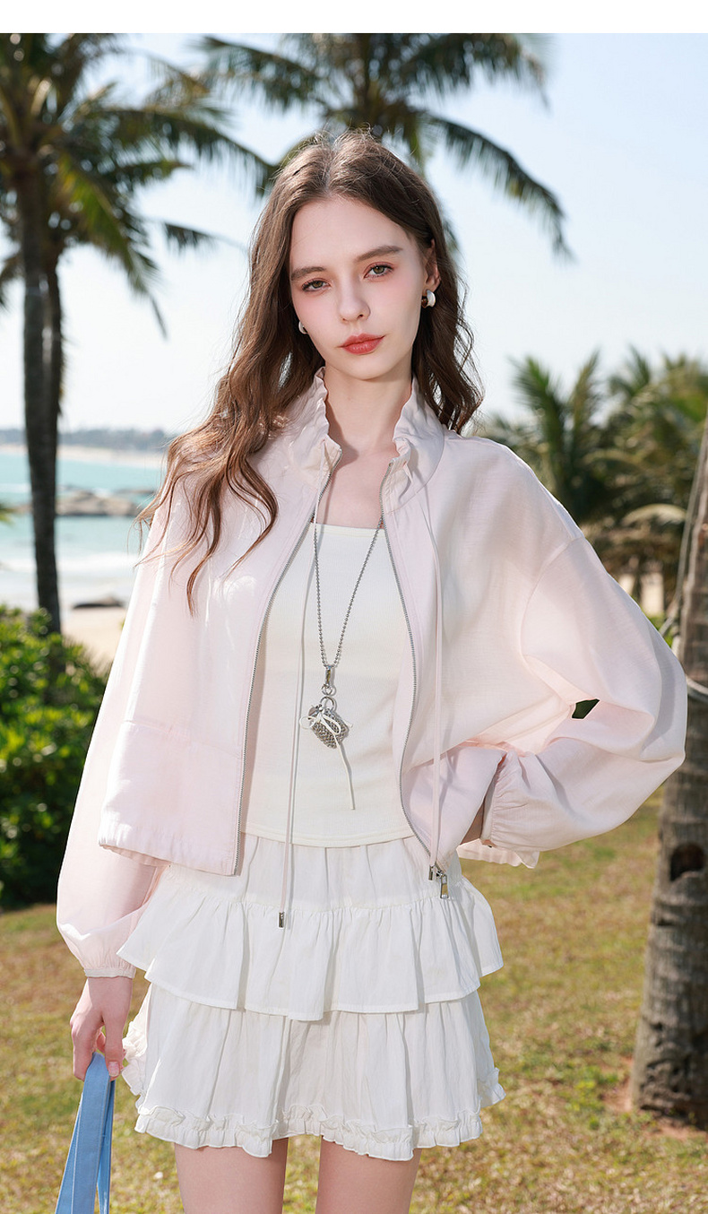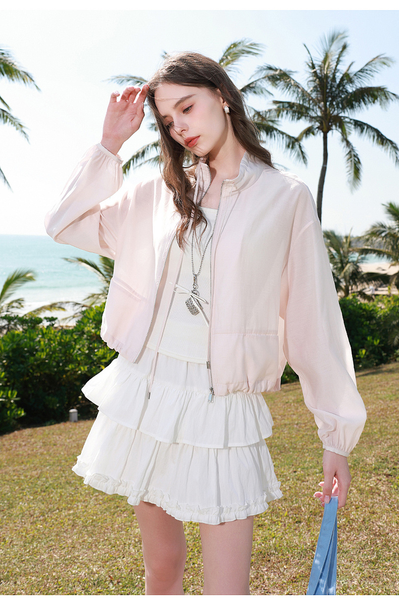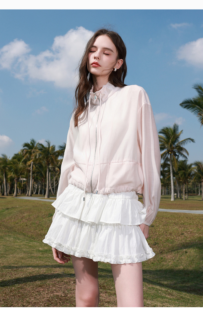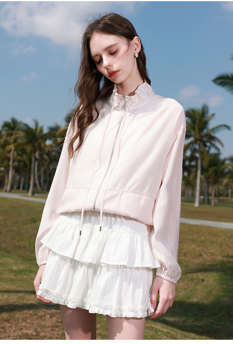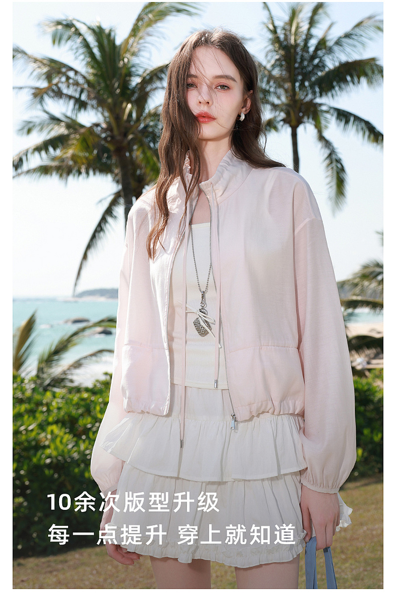 【醋酸】三彩2026夏季新款拉链立领短外套松弛开衫宽松休闲上衣M