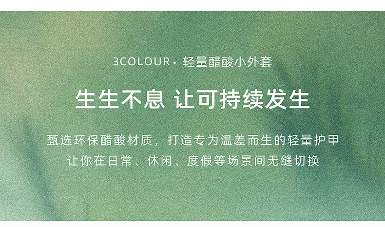 - 3COLOUR,一直致力于探索自我与时尚审美,用穿衣哲学折射生活主张,在流动中探寻恒久。
