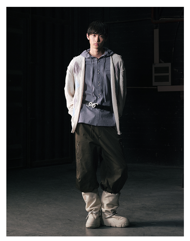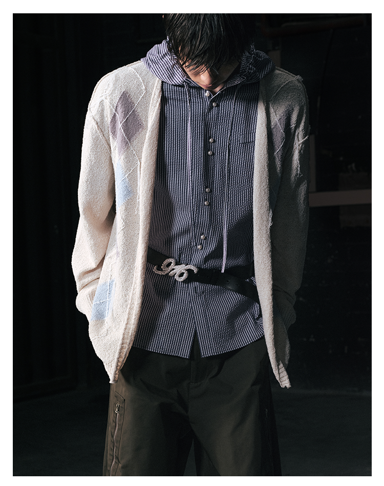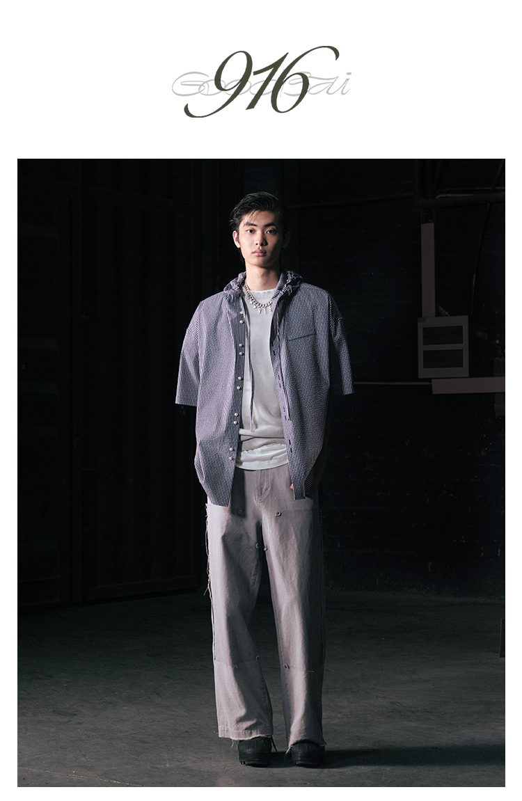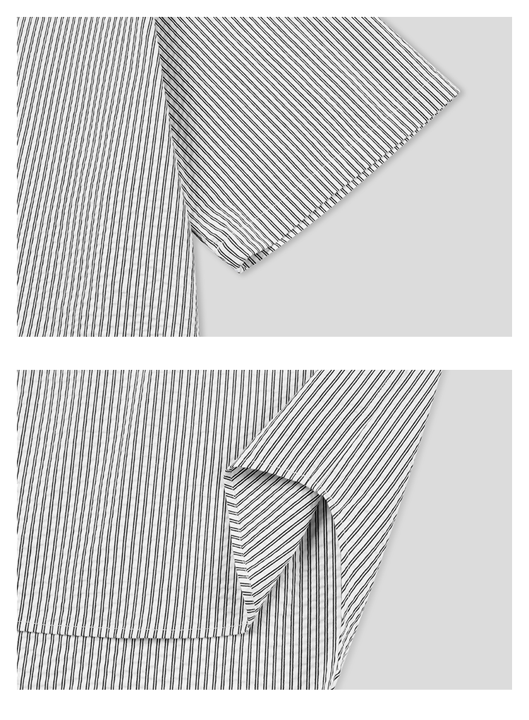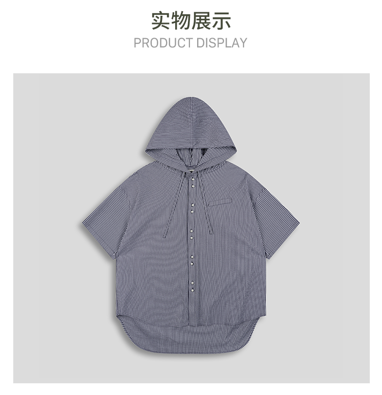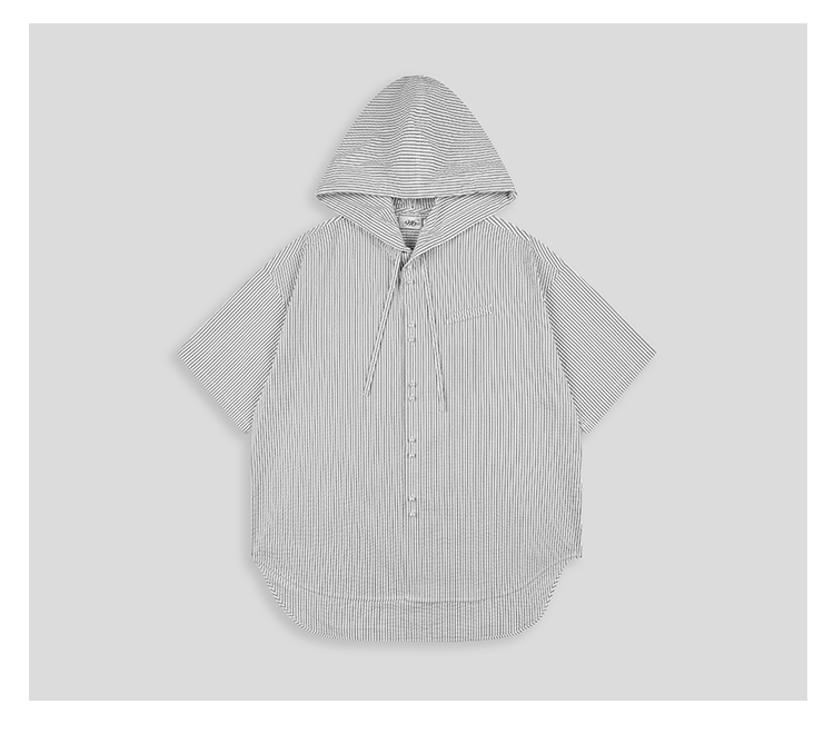 GOODBAI 916 条纹连帽仿珍珠扣口袋oversize短袖衬衫
