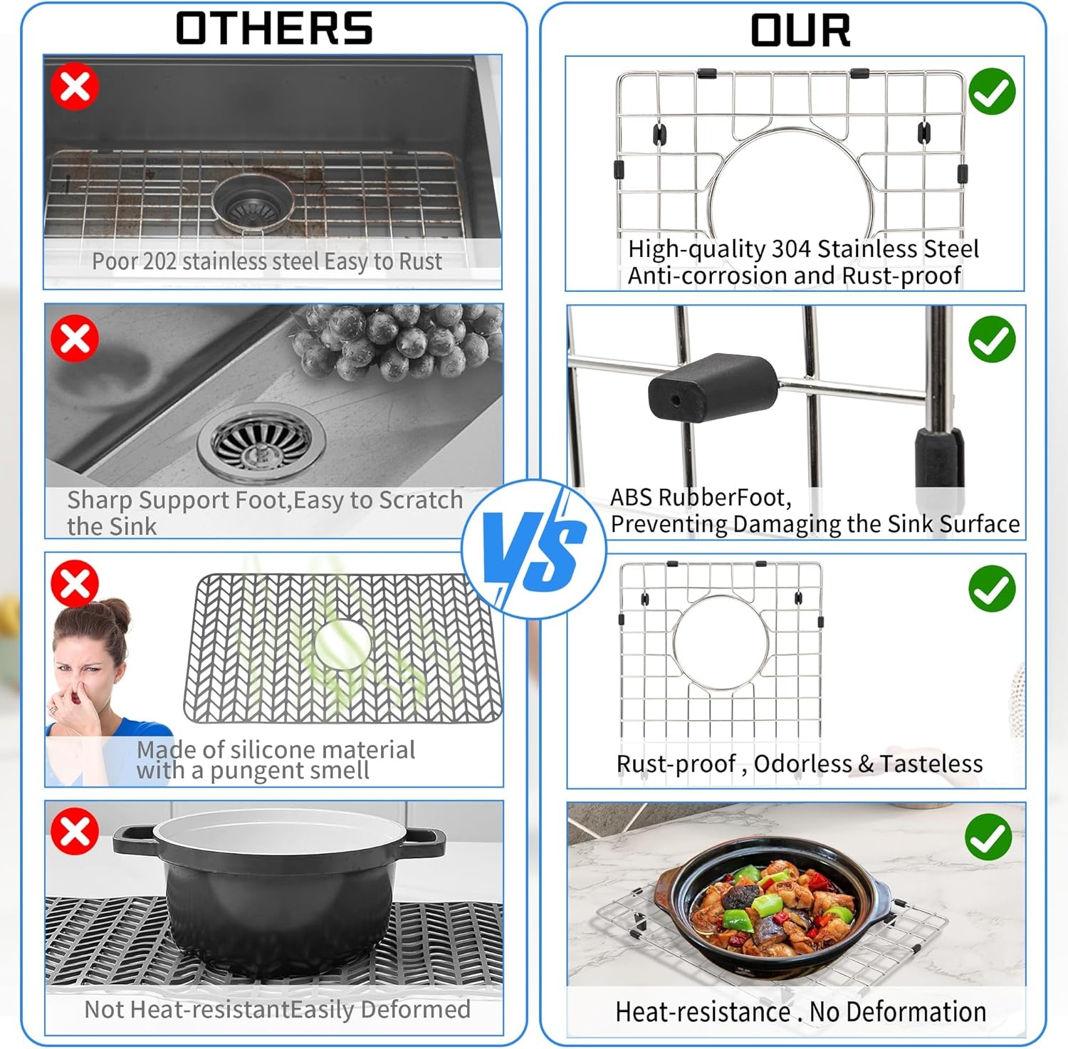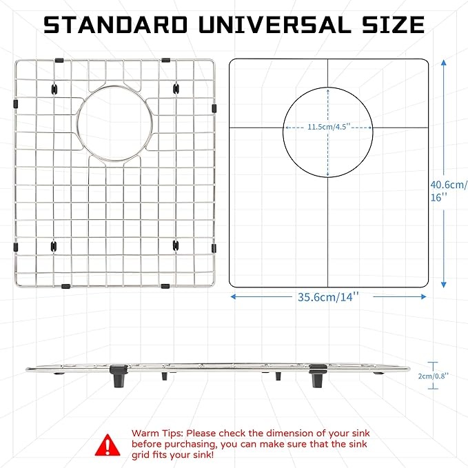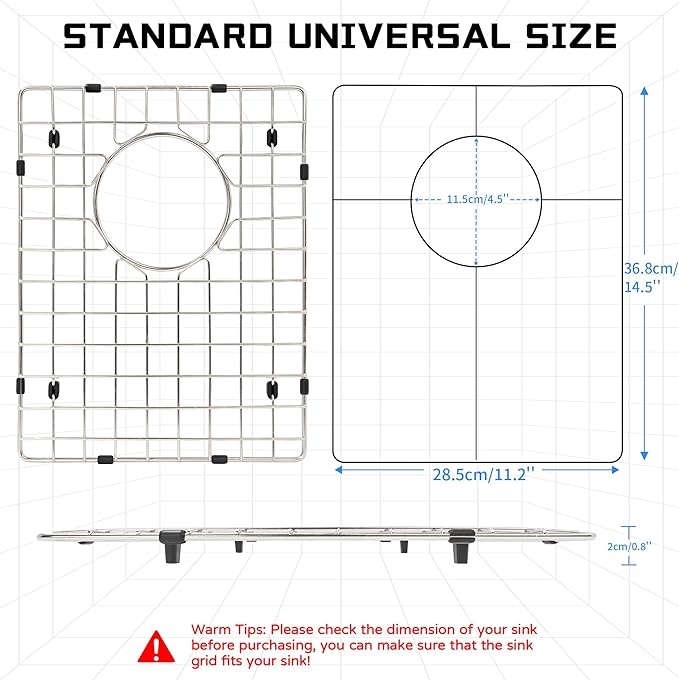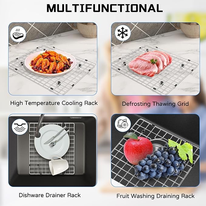 【人性化设计】我们的厨房水槽保护网格旨在保护水槽底部。改善洗碗,保护水槽和碗碟,保持水槽整洁。边缘处理平滑,防止割伤手指。