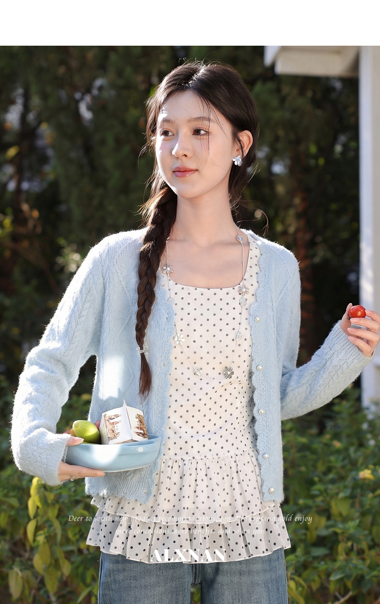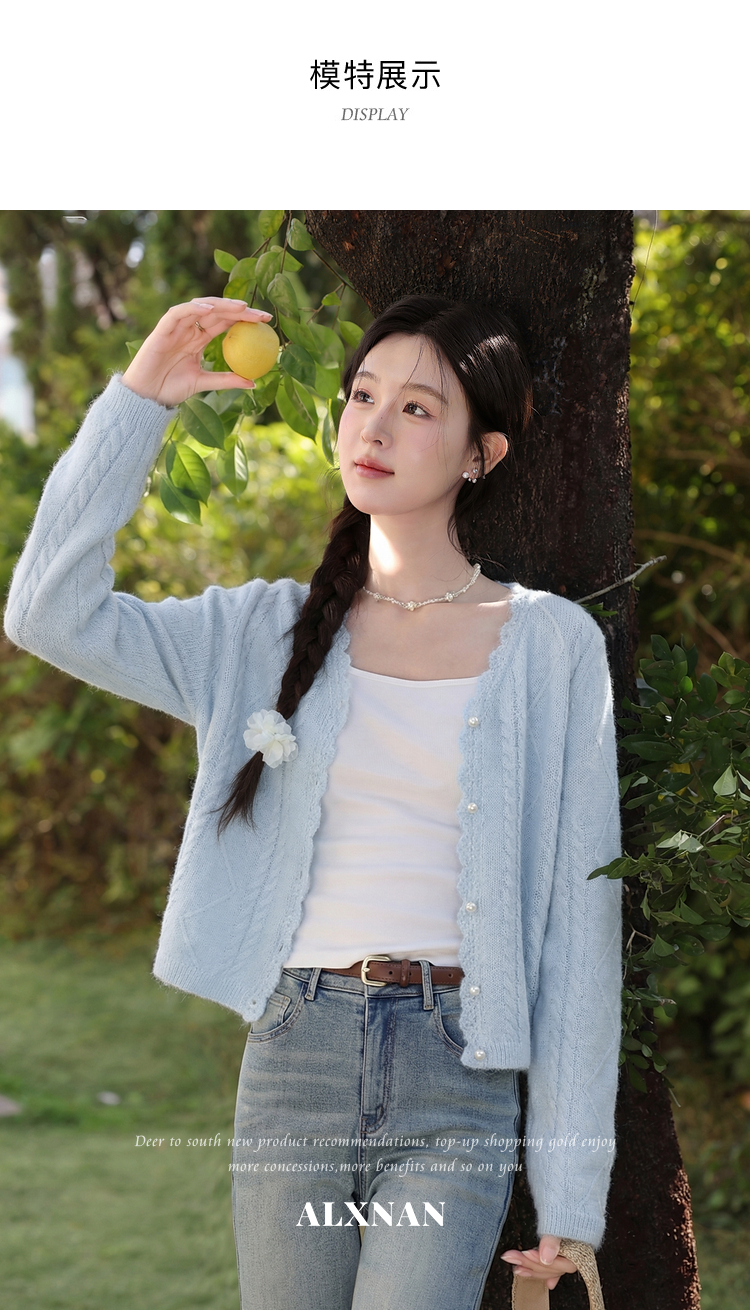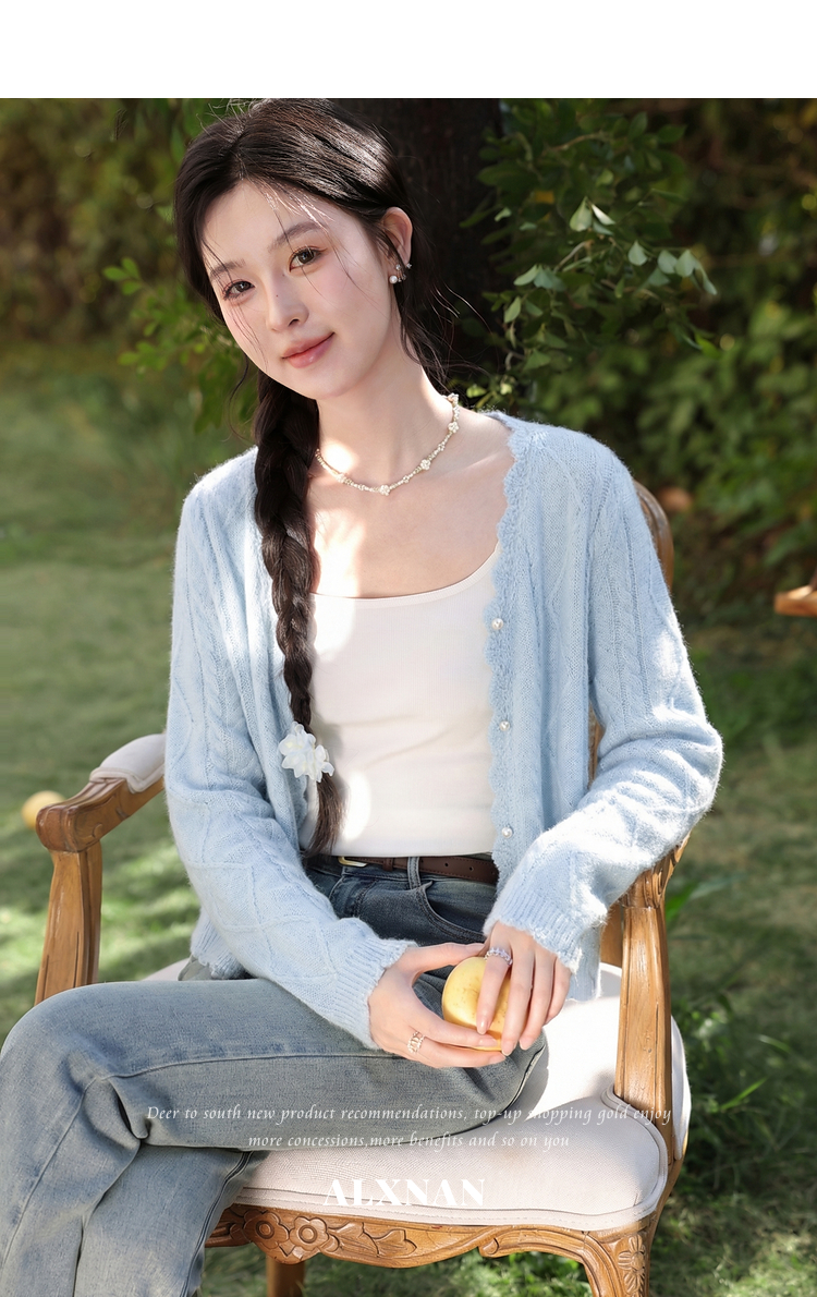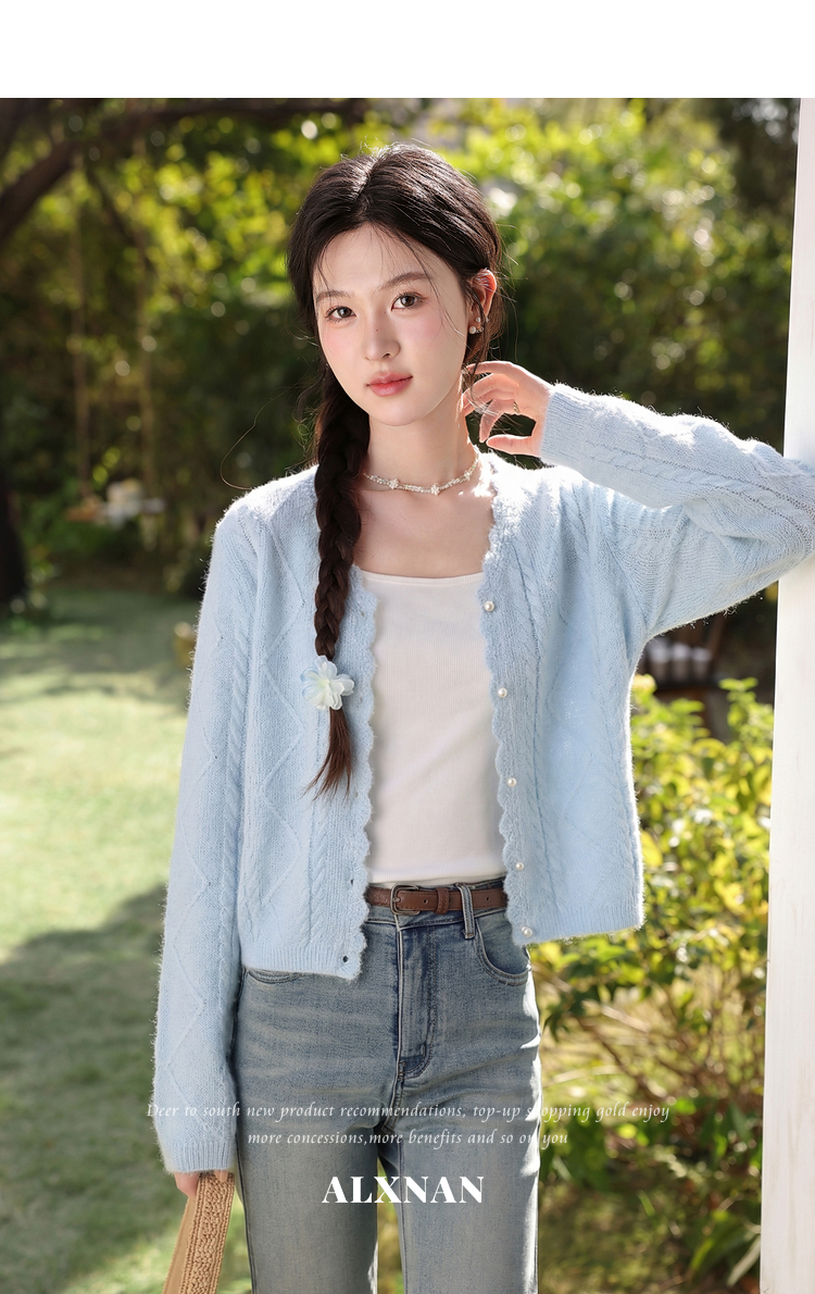 鹿向南「海盐奶蓝」巨温柔蓝色针织衫女春季新款法式气质开衫上衣