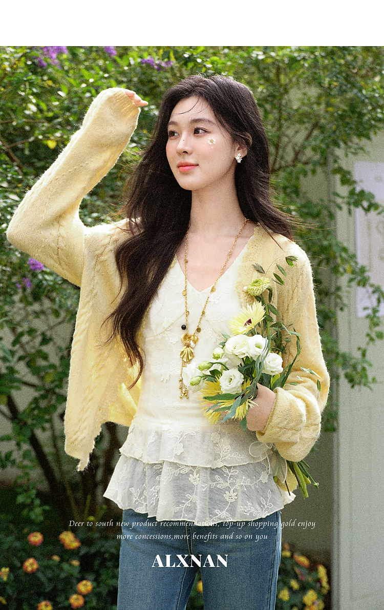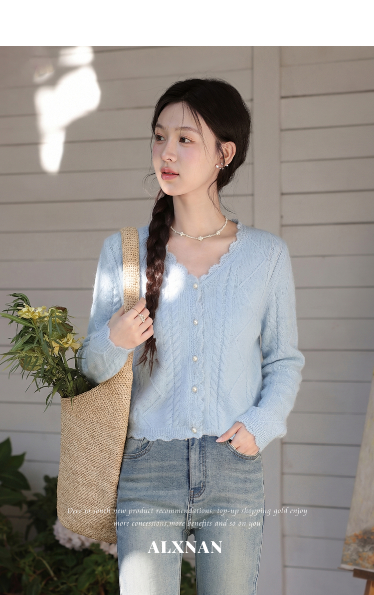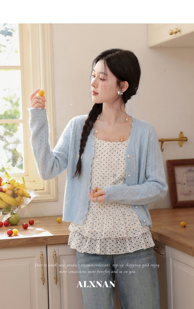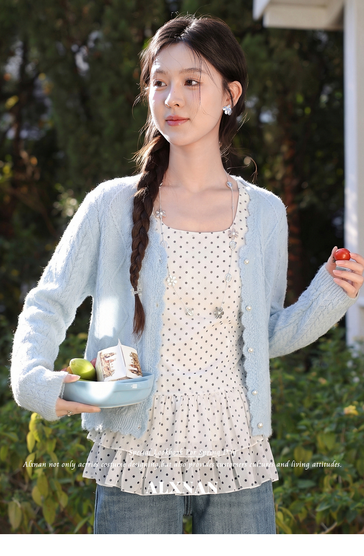 鹿向南「海盐奶蓝」巨温柔蓝色针织衫女春季新款法式气质开衫上衣