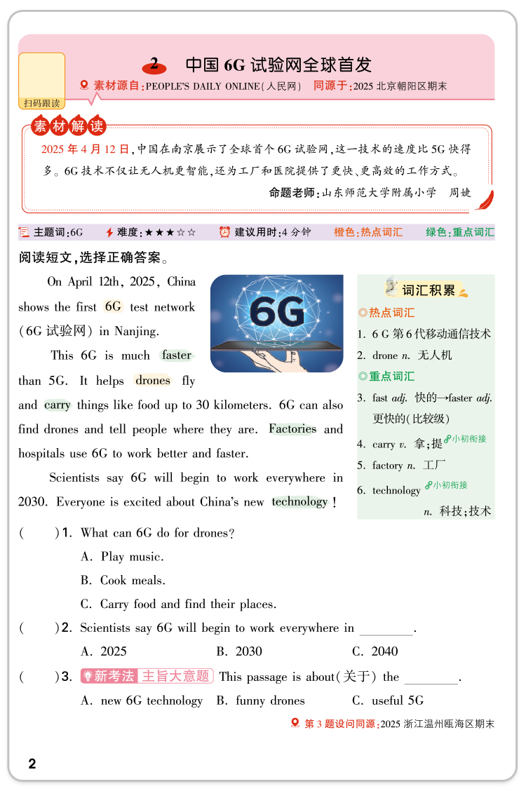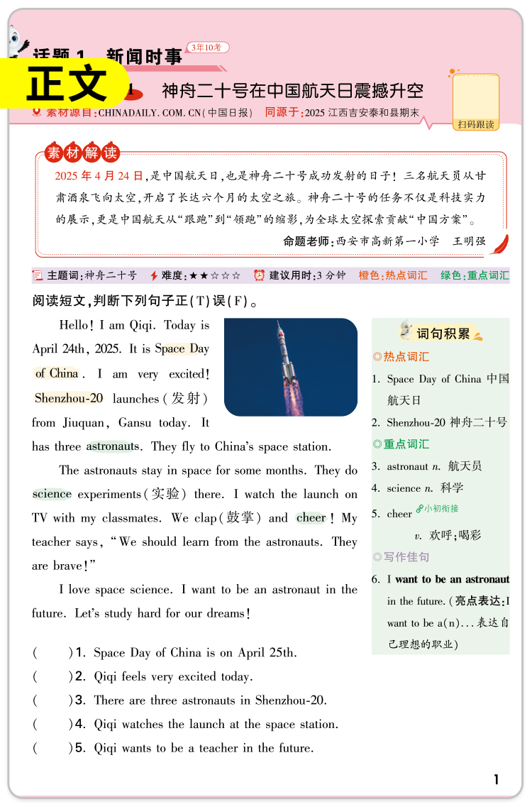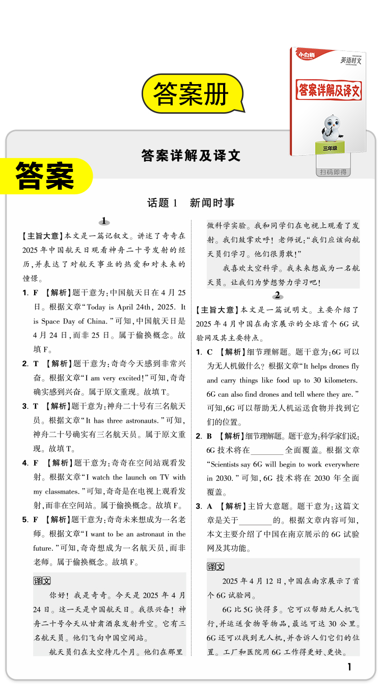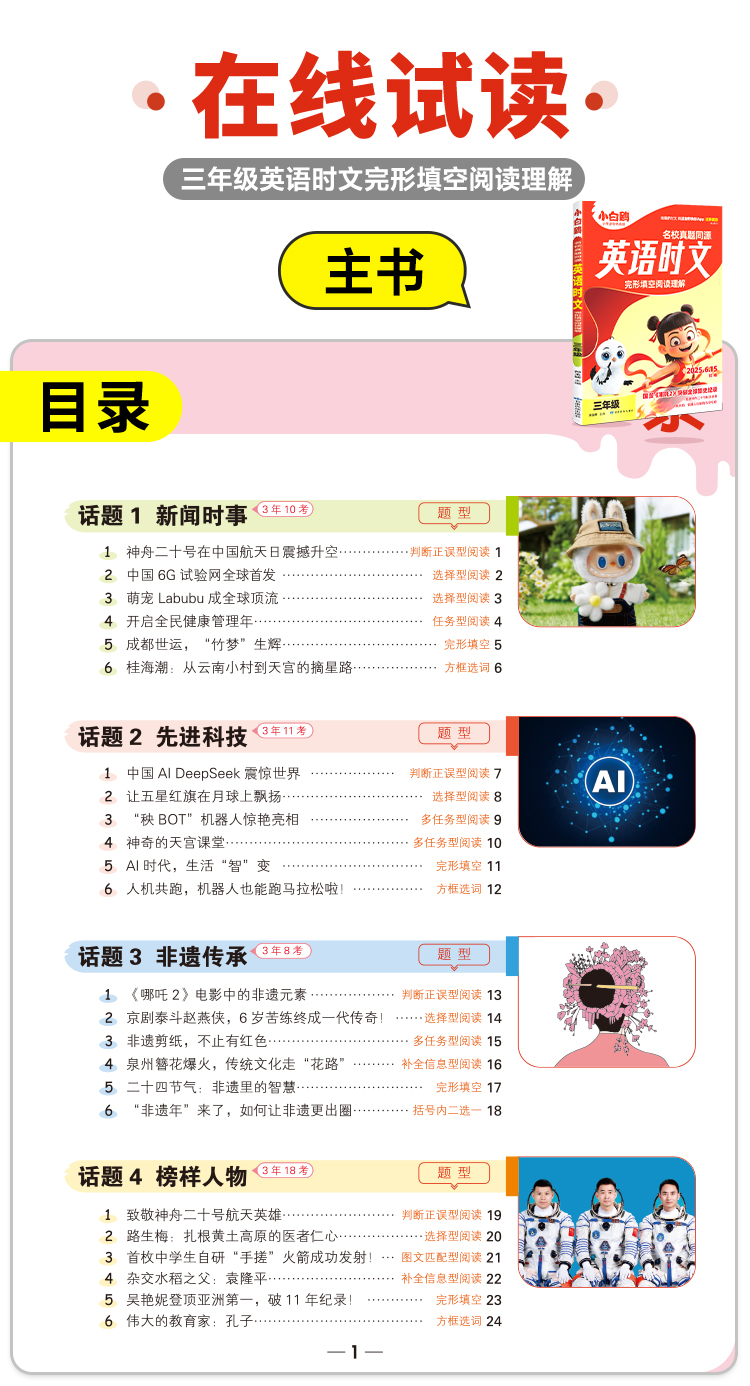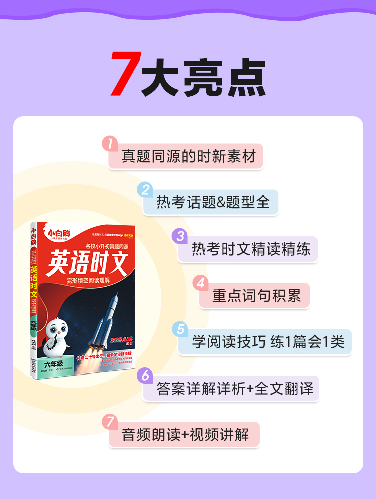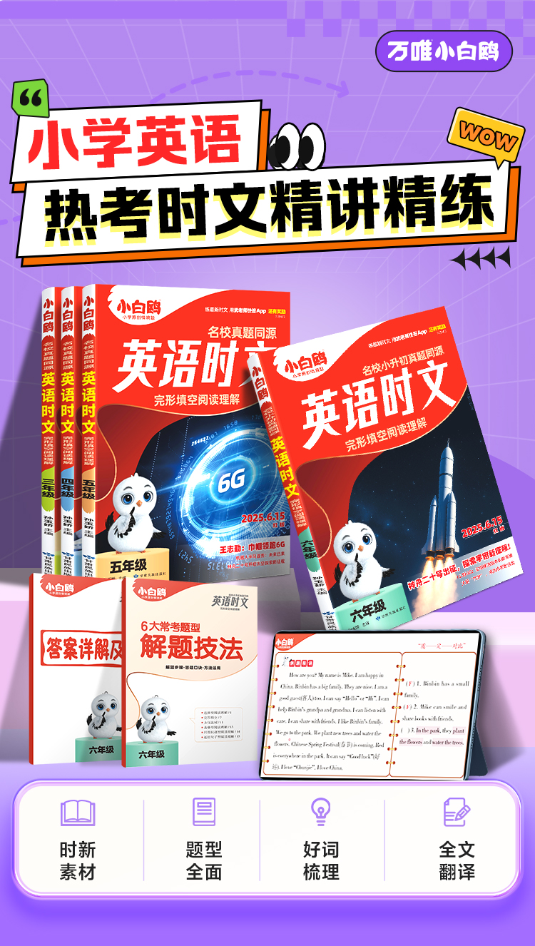 小白鸥英语时文小学同步练习册真题同源阅读理解完形填空25万唯