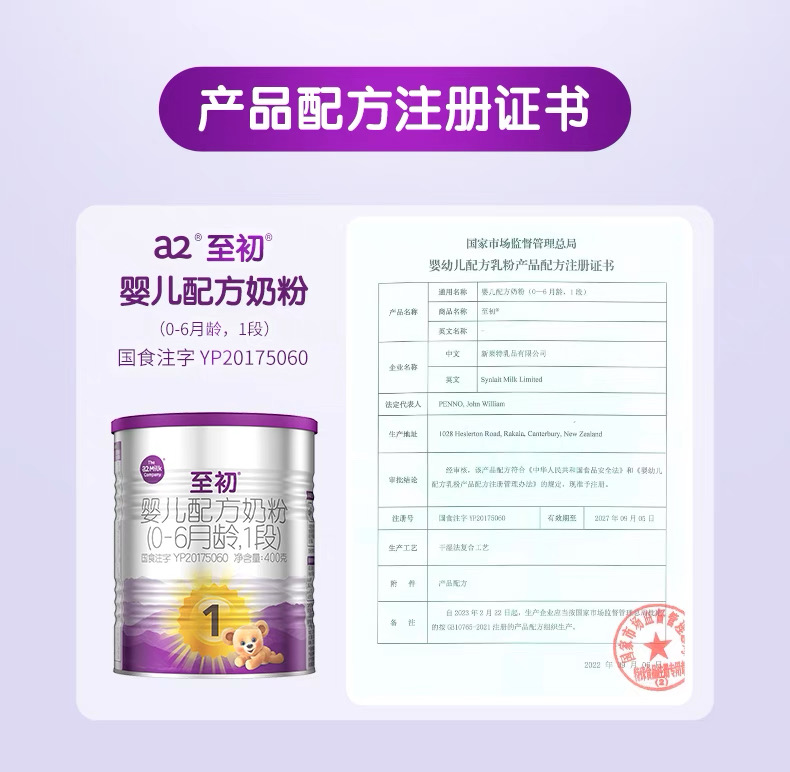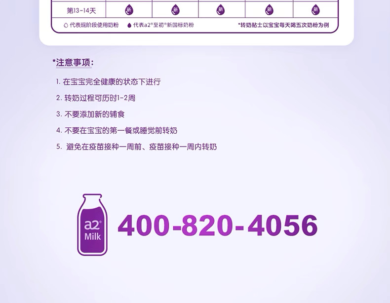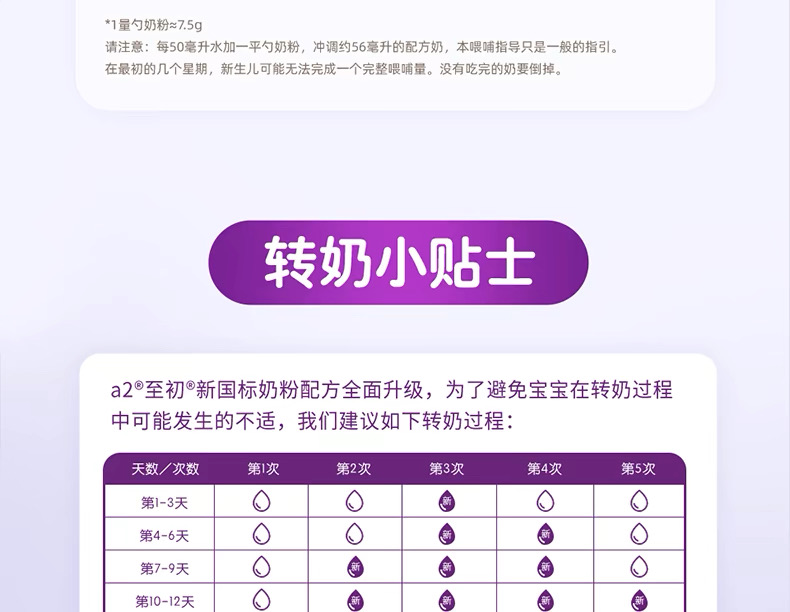 a2至初婴儿配方奶粉2段新生儿奶粉单罐装/400g(6-12月龄)