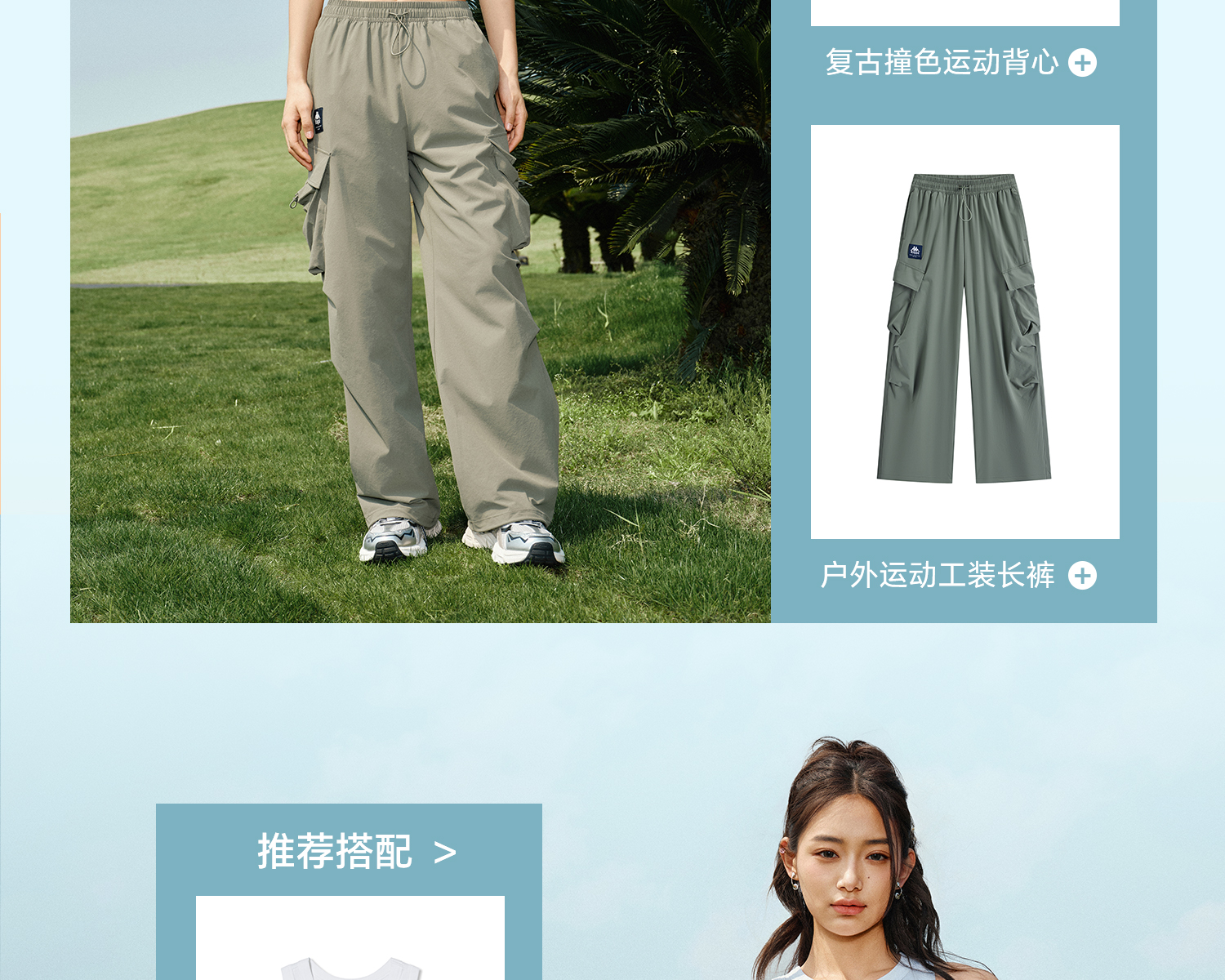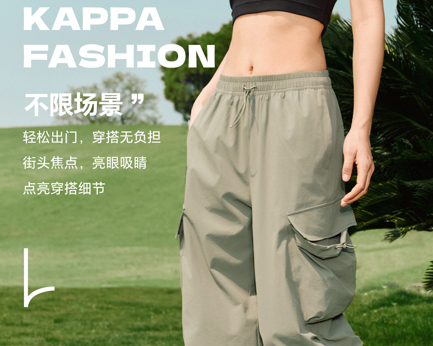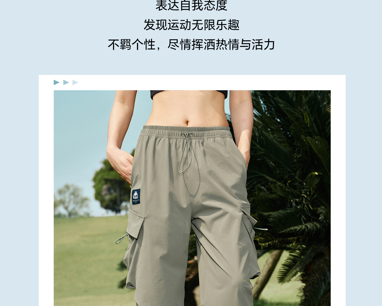Kappa卡帕背靠背防泼水运动长裤女2025新款户外休闲裤弹力工装裤