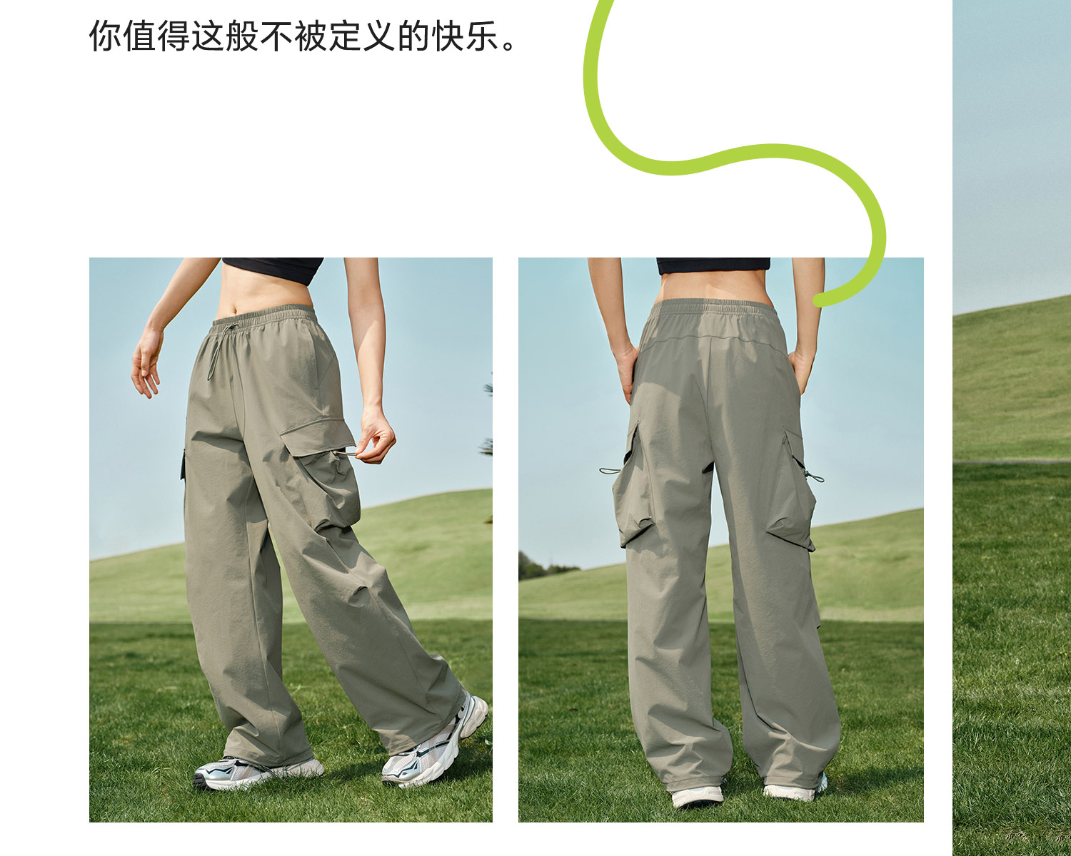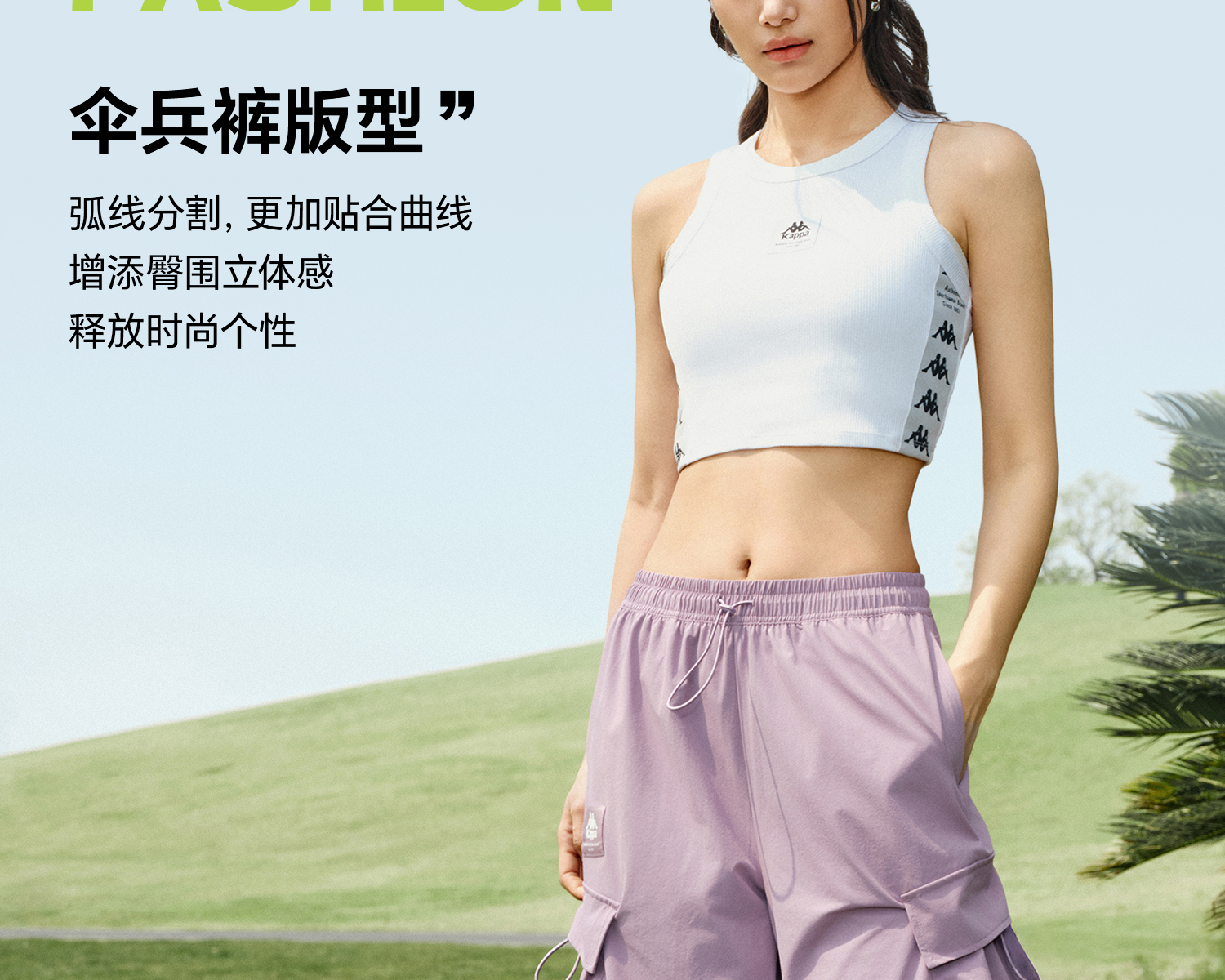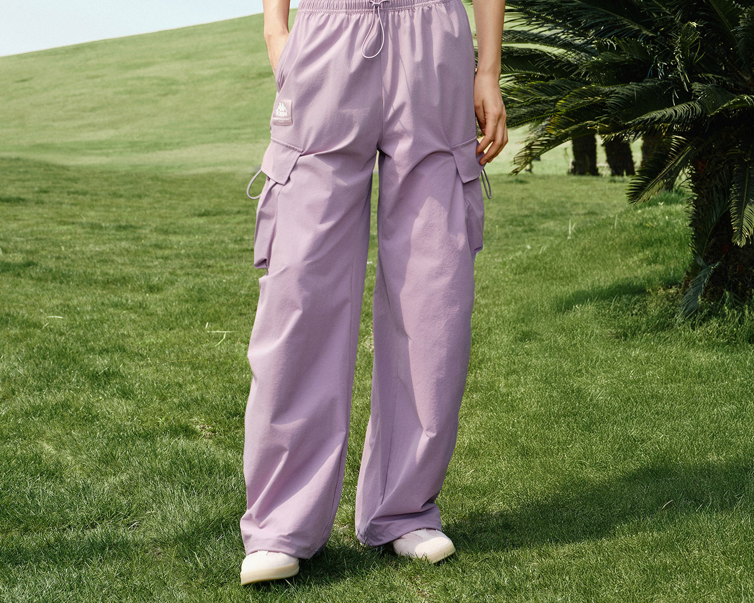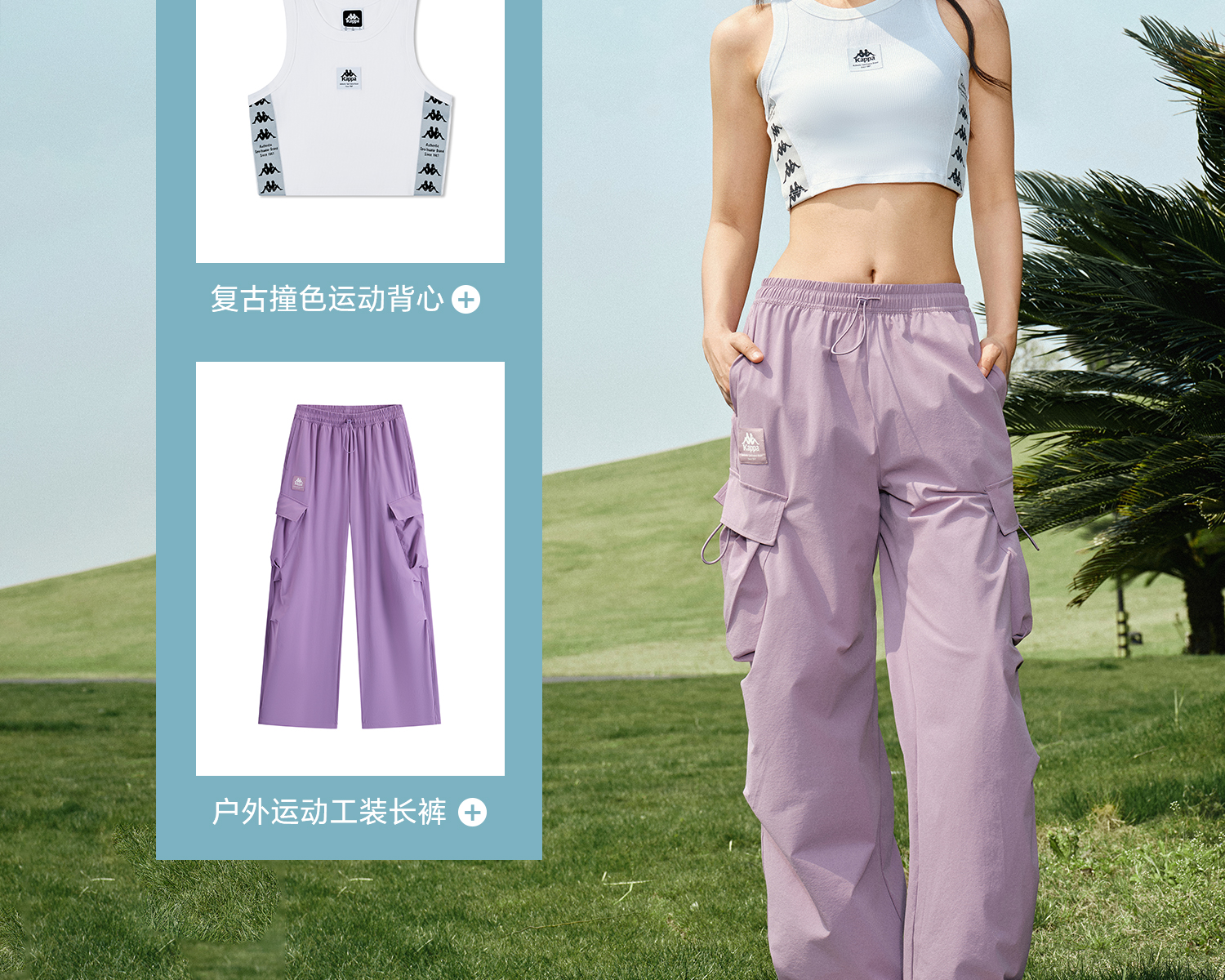 Kappa卡帕背靠背防泼水运动长裤女2025新款户外休闲裤弹力工装裤