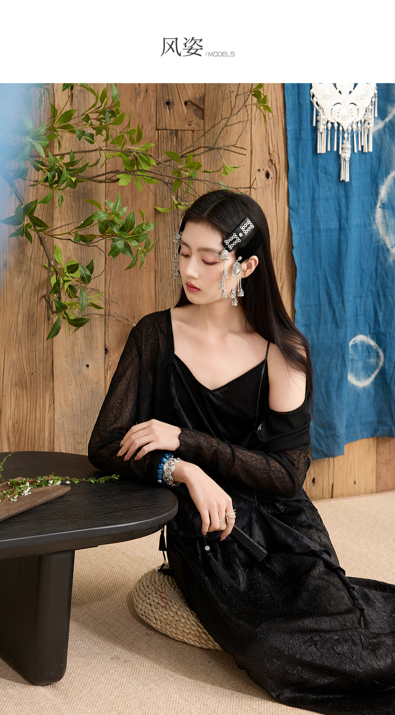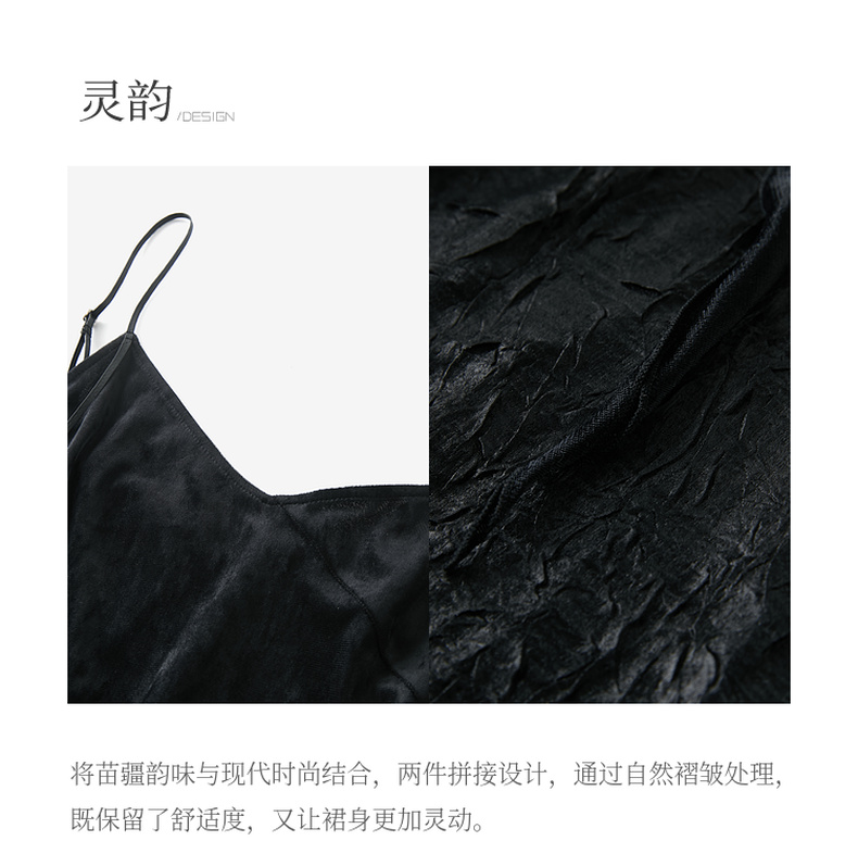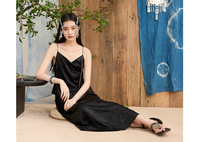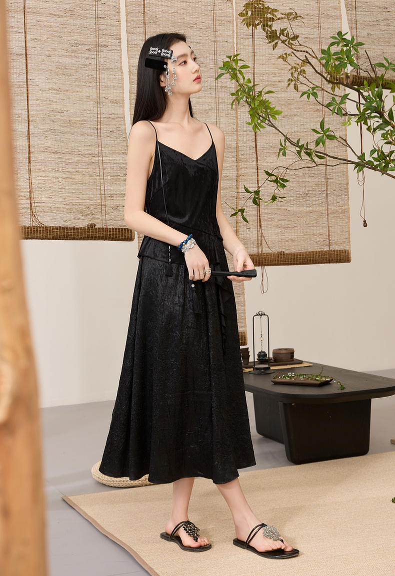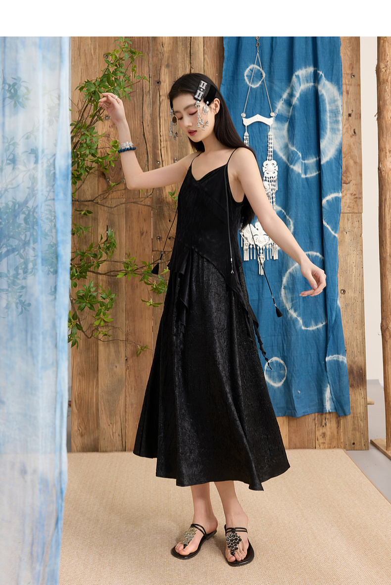 三彩【空明夜光】2025春季新款新中式吊带裙假两件连衣裙长裙C