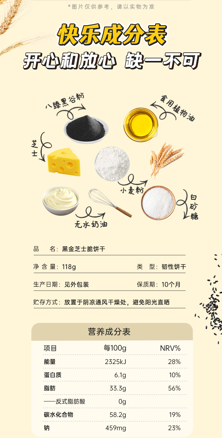 【宅猫日记】黑金芝士饼干◆含8种黑色谷物粉◆不含反式脂肪118g*5盒gh