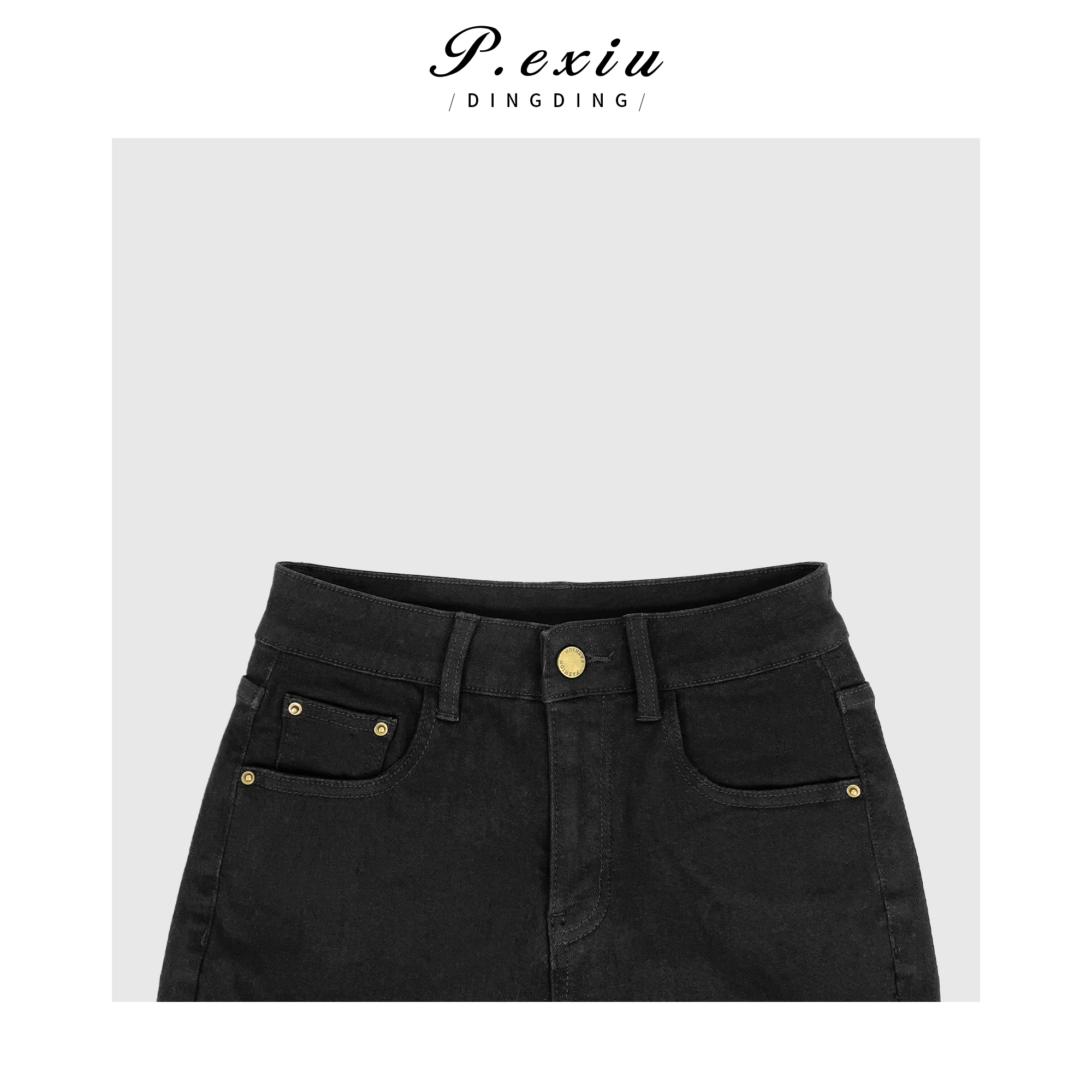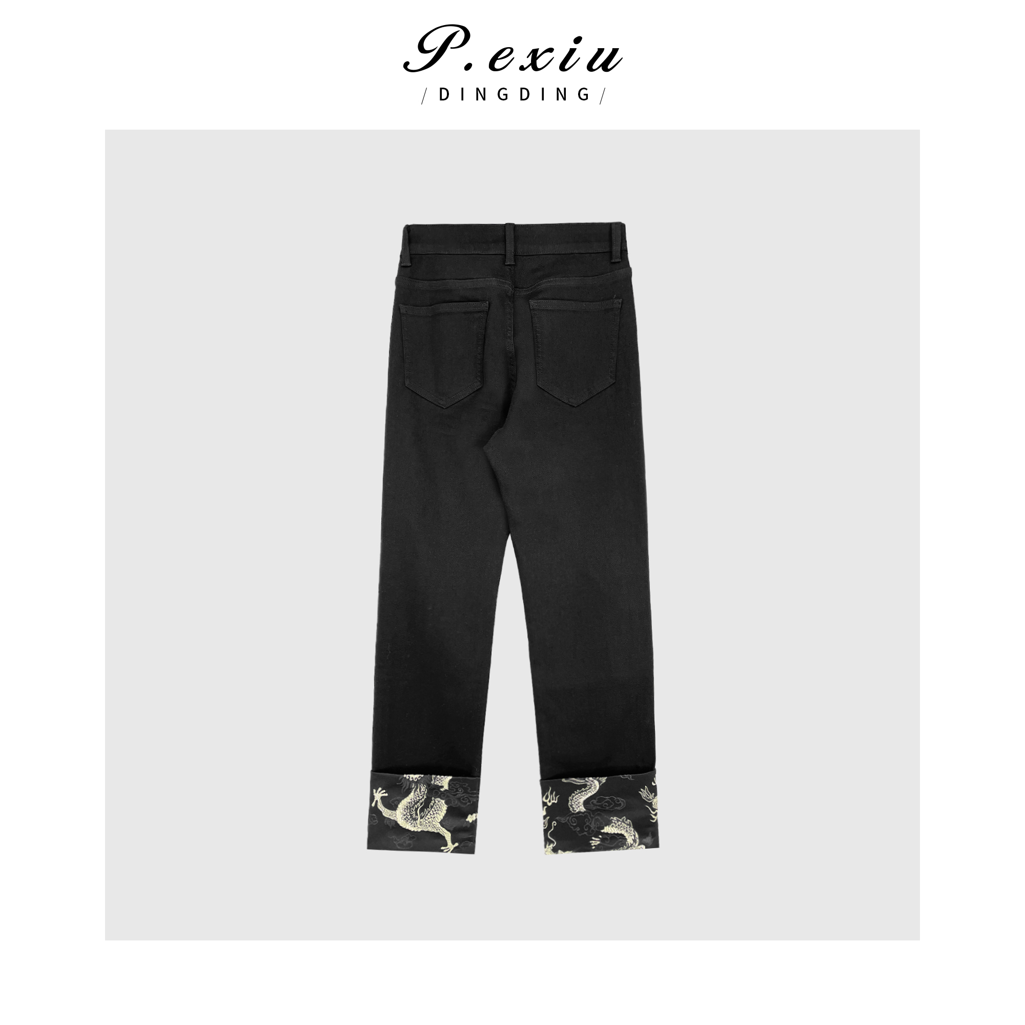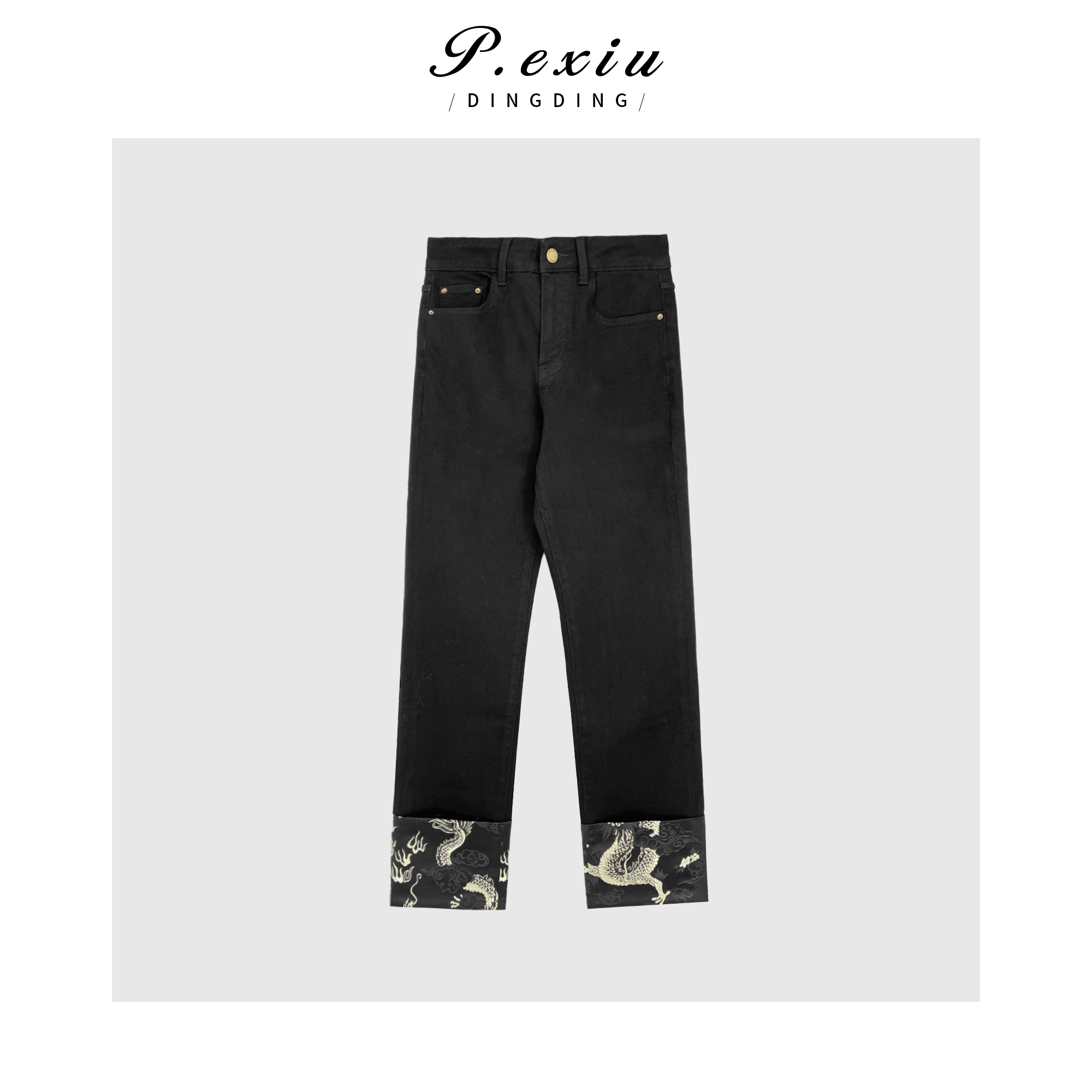 PanYiXiu/潘依绣龙年印花极简复古百搭烟管裤牛仔裤 D6179