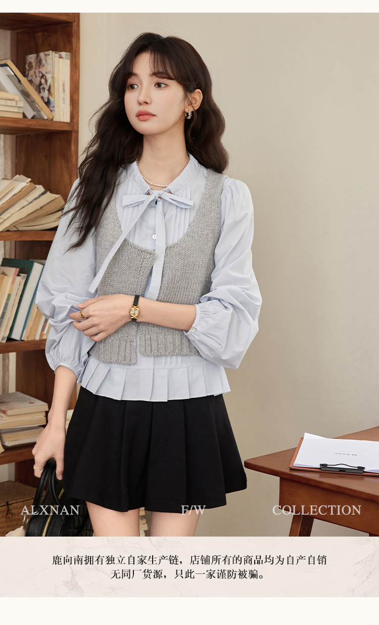 鹿向南「冬日旅途」假两件灰色针织衫毛衣开衫初女秋显瘦长袖上衣QJD00608
