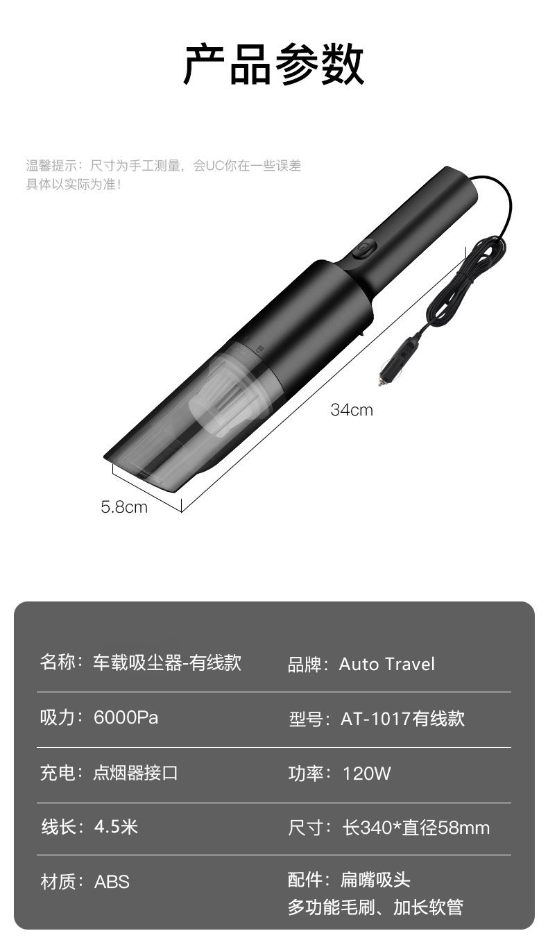 Auto Travel美旅 车载吸尘器AT-1017有线款